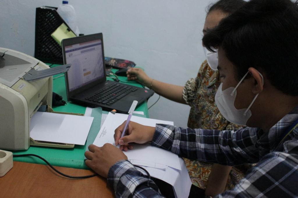 Dengan tetap memperhatikan protokol kesehatan, Petugas Penyuluh KP2KP Banawa Teguh Imansyah memberikan demo terkait tata cara perekaman bukti potong atau bukti pungut melalui e-Bupot hingga dilaporkan dalam bentuk Surat Pemberitahuan (SPT) Masa.
