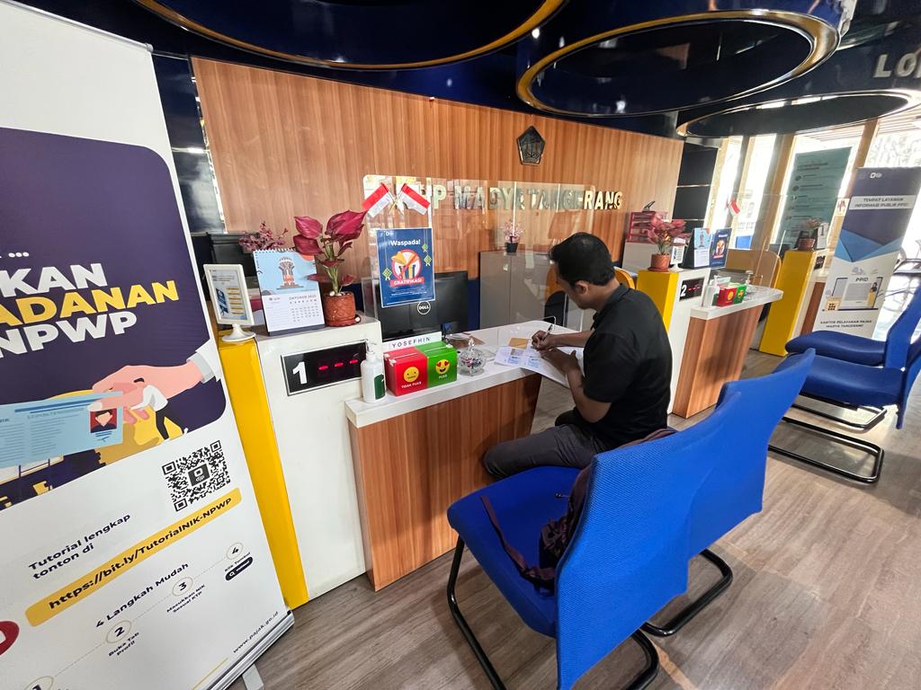 Kantor Pelayanan Pajak (KPP) Madya Tangerang menerima kunjungan dari salah satu Wajib Pajak Badan bertempat di Tempat Pelayanan Terpadu (TPT), Gedung Menara Top Food, Alam Sutera, Jalan Jalur Sutera Barat No.3, RT.003/RW.006, Panunggangan Timur, Pinang, Kota Tangerang, Banten (Selasa, 17/10).