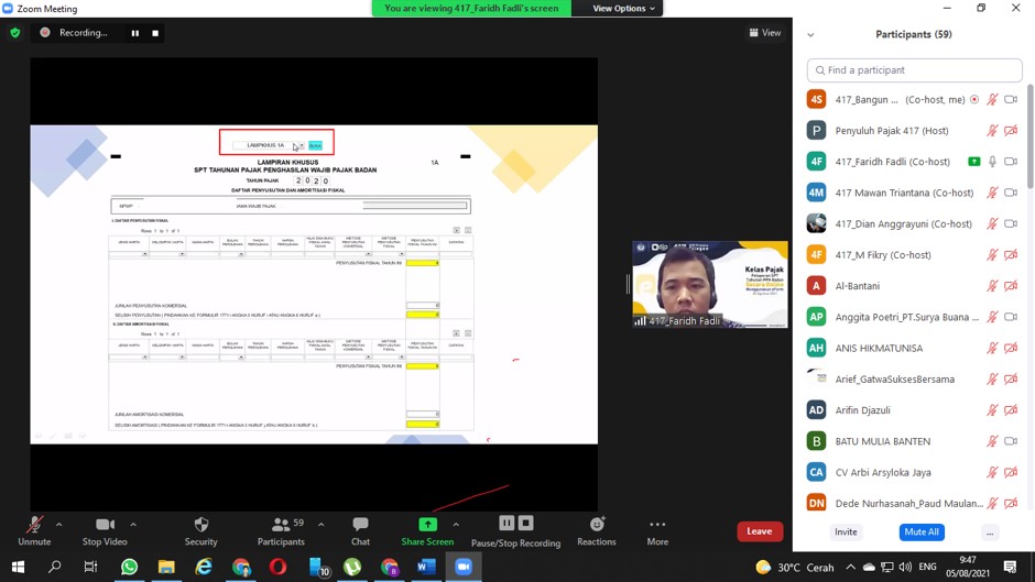 Selain memaparkan materi, narasumber juga berinisiatif mengajak para peserta untuk langsung praktik mengisi SPT melalui e-form. Sebelum kelas dimulai, narasumber memastikan seluruh peserta memiliki akun djponline yang aktif dan dapat mengakses akunnya.
