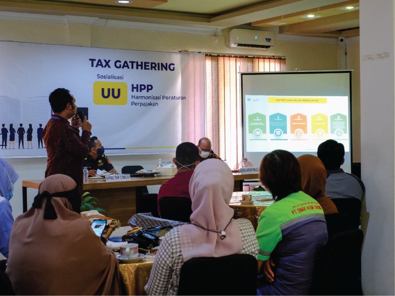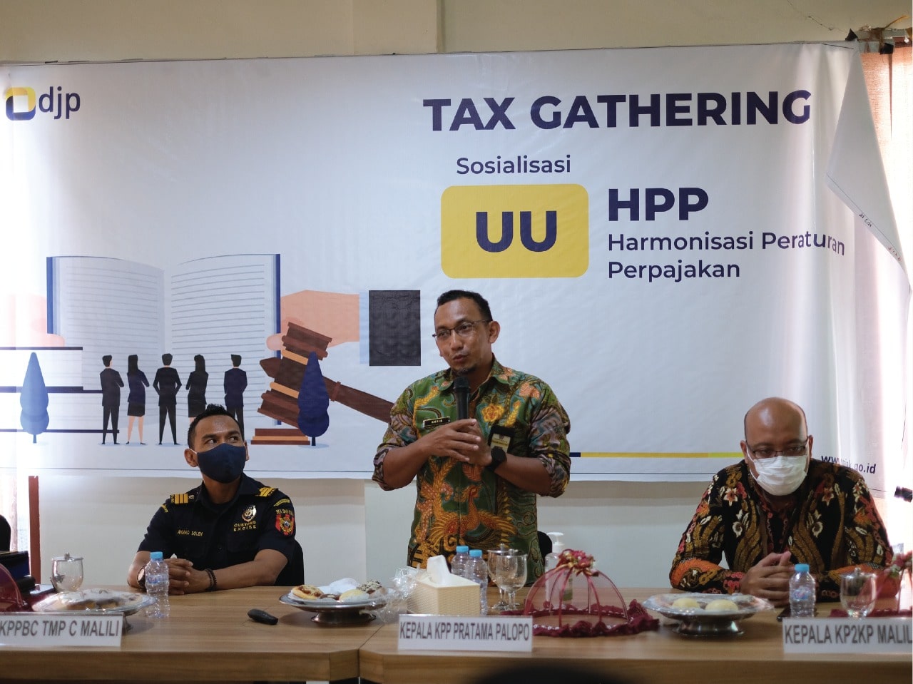 Kantor Pelayanan, Penyuluhan, dan Konsultasi Perpajakan (KP2KP) Malili dan Kantor Pelayanan Pajak (KPP) Pratama Palopo bekerja sama menyelenggarakan acara Tax Gathering dengan tajuk Sosialisasi Undang-Undang Harmonisasi Peraturan Perpajakan (UU HPP) (Selasa, 14/12). Kegiatan ini dilangsungkan secara luring di ruang aula Hotel I Lagaligo, Puncak Indah, Kabupaten Luwu Timur.
