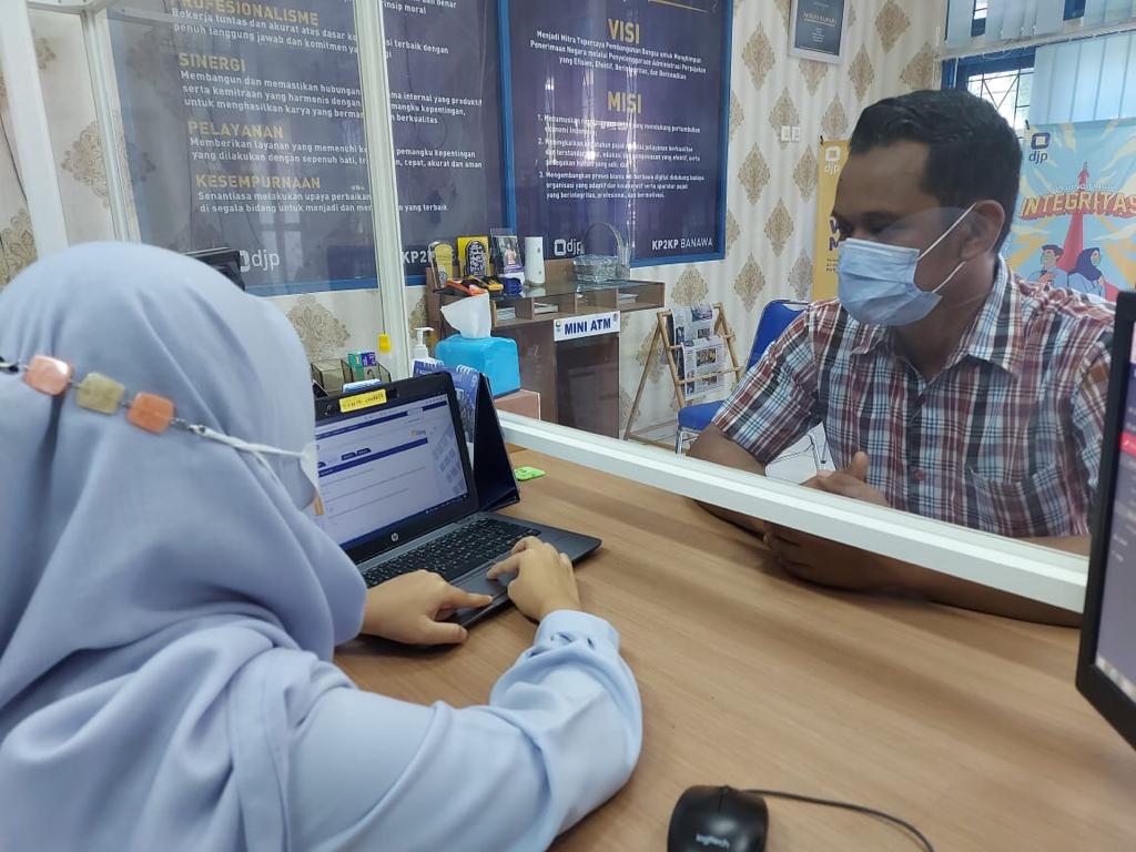 Kantor Pelayanan Penyuluhan dan Konsultasi Perpajakan (KP2KP) Banawa memberikan asistensi pelaporan Surat Pemberitahuan (SPT) Tahunan kepada wajib pajak wilayah kabupaten Donggala yang melakukan pelaporan melalui loket Tempat Pelayanan Terpadu (TPT) KP2KP Banawa, kabupaten Donggala, Sulawesi Tengah (Rabu, 5/1).