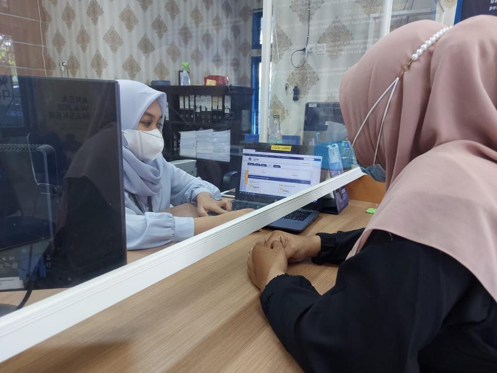 Beberapa wajib pajak datang ke loket untuk melakukan pelaporan SPT Tahunan tahun pajak 2021. Salah satu wajib pajak Nursinta mengatakan bahwa melakukan pelaporan di awal tahun lebih mudah dan lebih cepat.