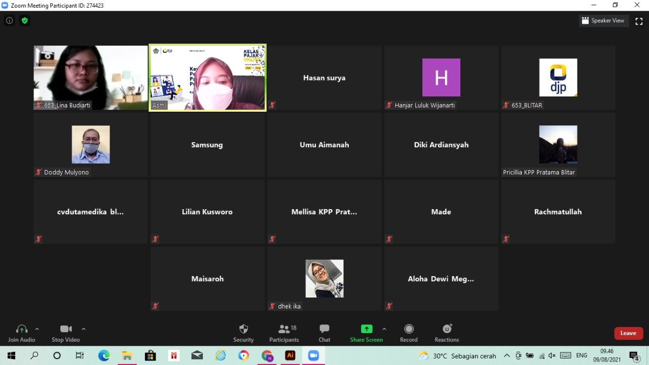 Kantor Pelayanan Pajak (KPP) Pratama Blitar mengadakan kelas pajak secara daring di Blitar (Senin, 9/8). Kelas pajak kali ini ditujukan bagi Wajib Pajak Orang Pribadi Karyawan yang baru terdaftar di 2021. Berlangsung tanpa tatap muka, kelas pajak diadakan melalui media aplikasi Zoom Meeting dari Ruang Rapat KPP Pratama Blitar, Kota Blitar.