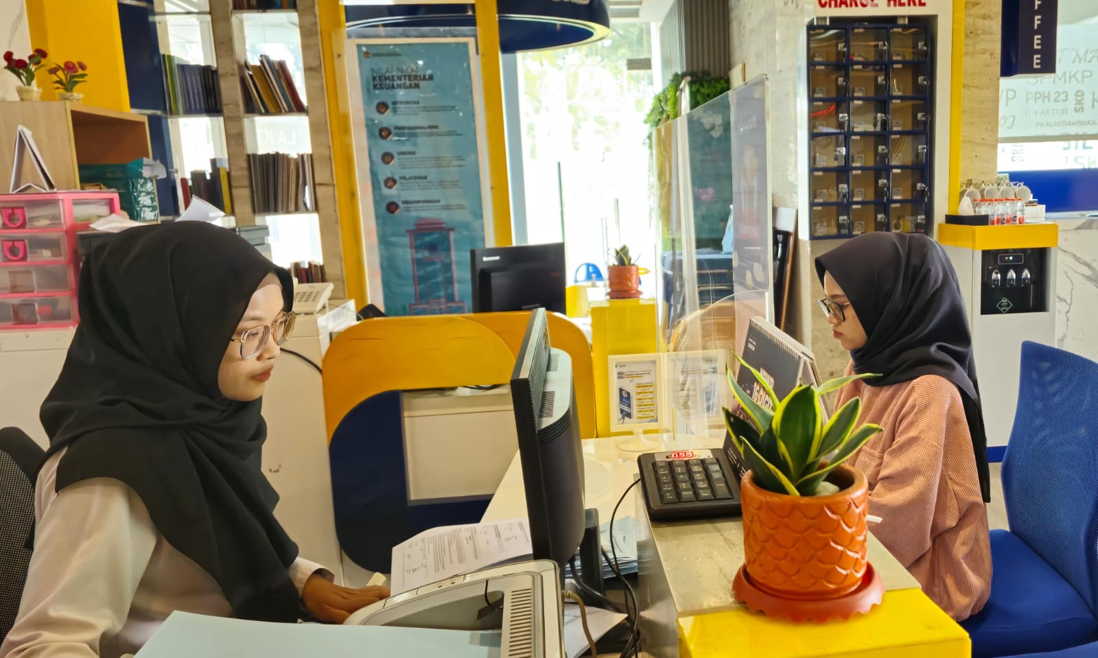 Indah, Petugas Kantor Pelayanan Pajak (KPP) Madya Tangerang, memberikan pelayanan kepada Wajib Pajak Orang Pribadi yang datang ke Loket Tempat Pelayanan Terpadu (TPT) KPP Madya Tangerang, Jalan Jalur Sutera Barat Nomor 3, RT 003/RW 006, Pananggungan Timur, Pinang, Kota Tangerang (Senin, 17/2).