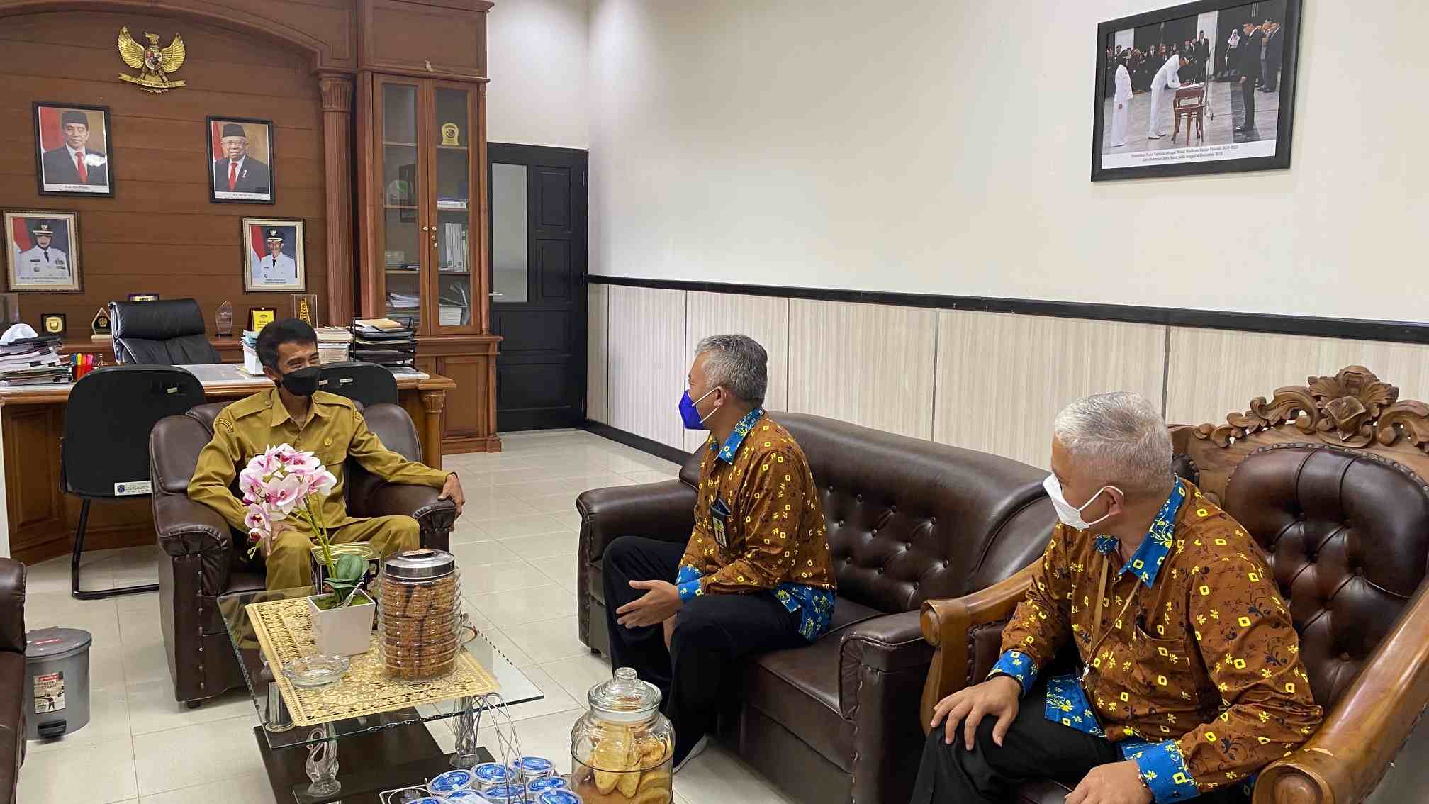Kepala KP2KP Banjar Slamet Rijadi Sugiharto bersama dengan Kepala Seksi Ekstensifikasi dan Penyuluhan KPP Pratama Ciamis Tatok Sri Hendarto, didampingi oleh tim media sosial KP2KP Banjar dan KPP Pratama Ciamis memberikan apresiasi kepada Nana.