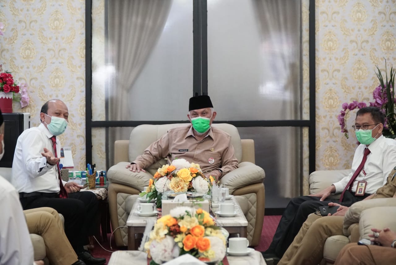 Kepala KPP Pratama Padang Satu Agus Budihardjo bersama Kepala KPP Pratama Padang Dua Prabowo Pribadi mengunjungi rumah dinas Walikota Padang (Senin, 22/2).