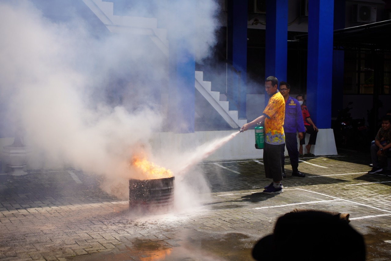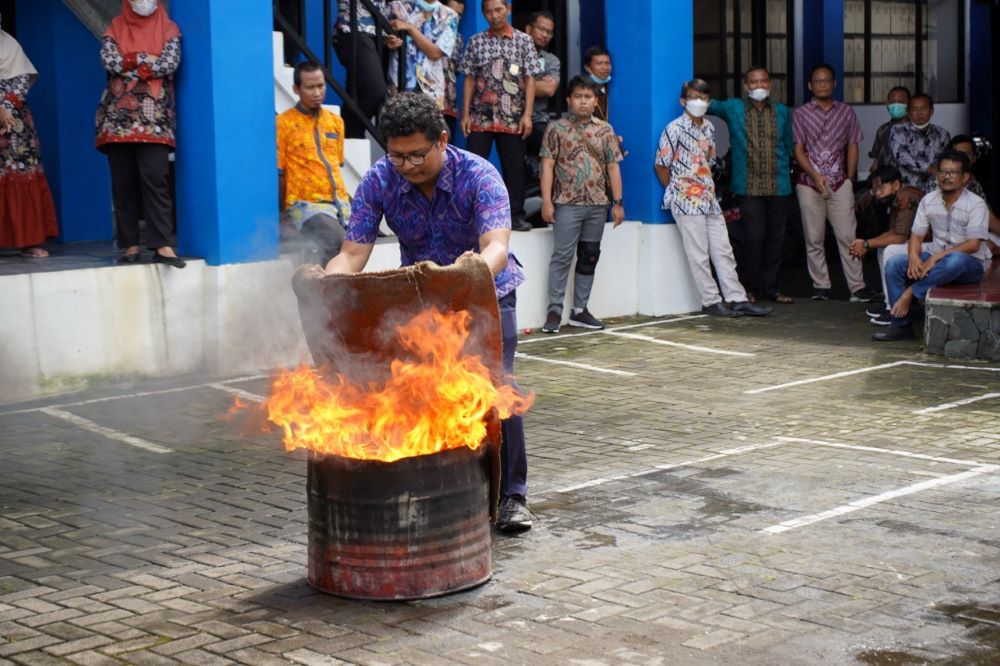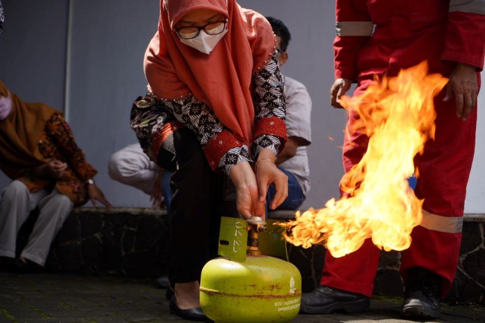 Terdapat beberapa cara memadamkan api dicontohkan pada simulasi tersebut, yaitu cara menangani kebocoran gas LPG, memadamkan api menggunakan kain yang telah dibasahi, dan cara menggunakan tabung APAR (Alat Pemadam Api Ringan).