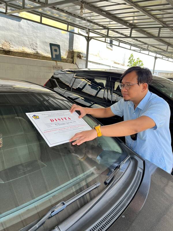Juru Sita Pajak Negara (JSPN) Kantor Pelayanan Pajak (KPP) Pratama Cimahi Fifik Taofik melakukan penyitaan aset penunggak pajak di Kabupaten Bandung Barat (Jumat, 9/6).