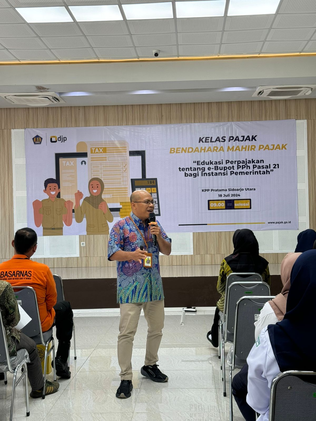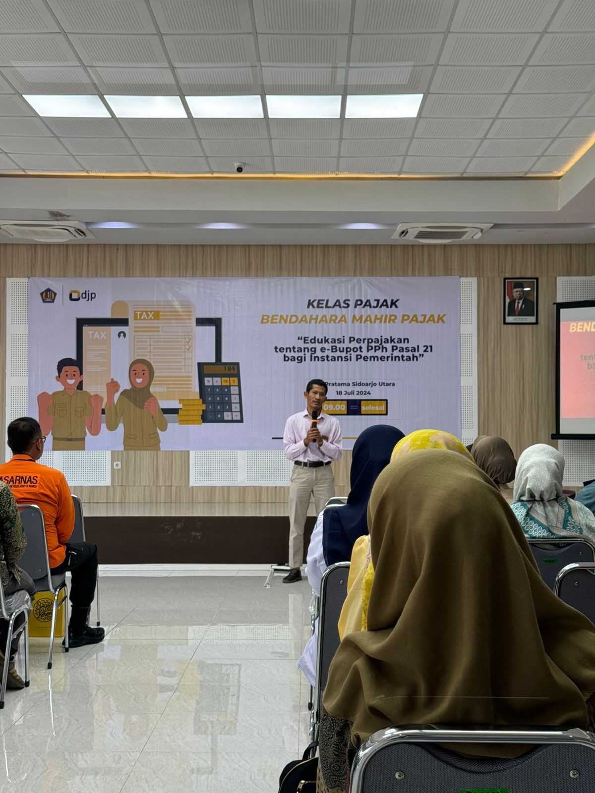 Kantor Pelayanan Pajak (KPP) Pratama Sidoarjo Utara menggelar Kelas Pajak bagi bendaharawan di Aula KPP Pratama Sidoarjo Utara (Kamis, 19/7).