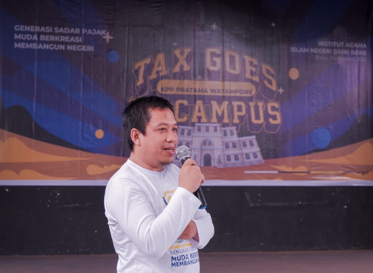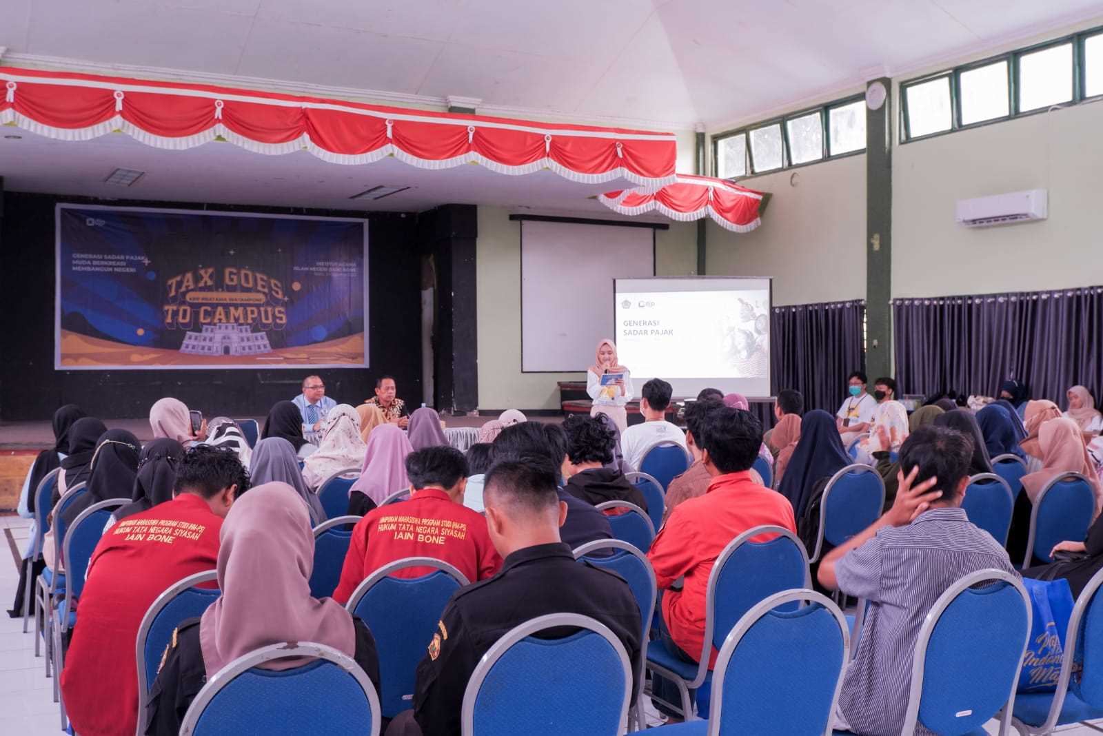 Kantor Pelayanan Pajak (KPP) Pratama Watampone menyelenggarakan kegiatan Tax Goes To Campus (TGTC) di Aula Utama Institut Agama Islam Negeri (IAIN) Bone (Rabu, 24/8). Kegiatan yang diikuti oleh puluhan Mahasiswa IAIN ini merupakan program inklusi kesadaran pajak untuk mewujudkan generasi muda sadar pajak dan membentuk karakter cinta tanah air.