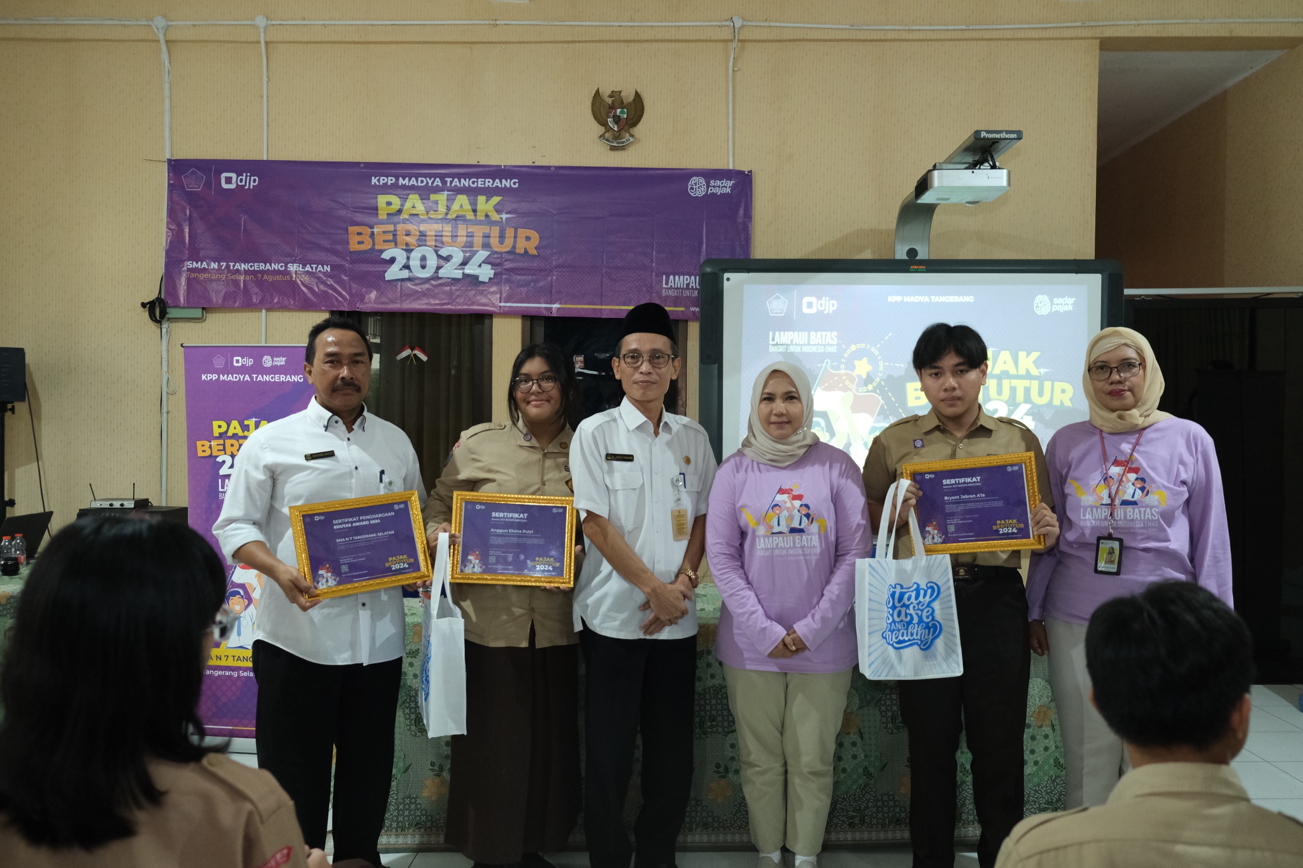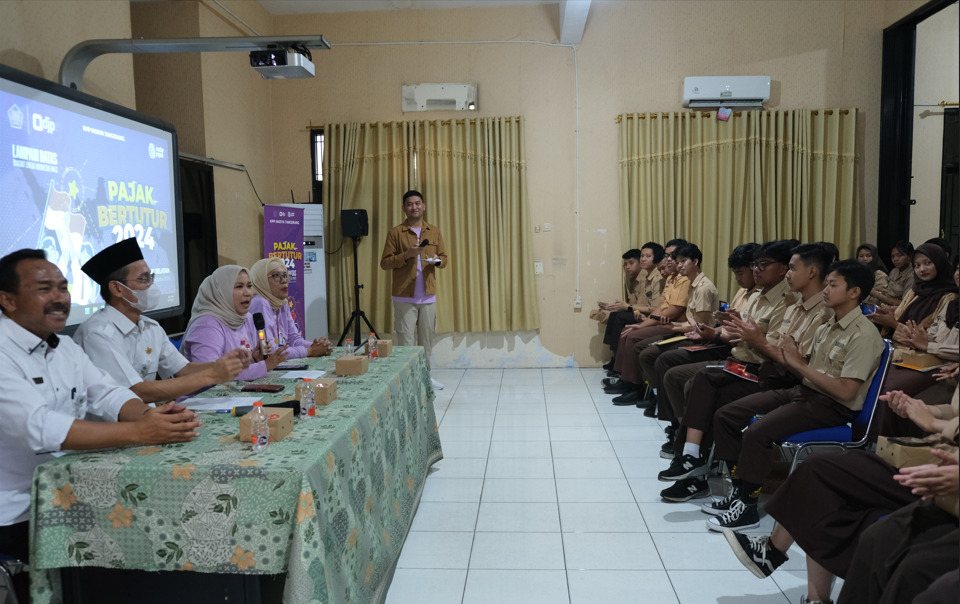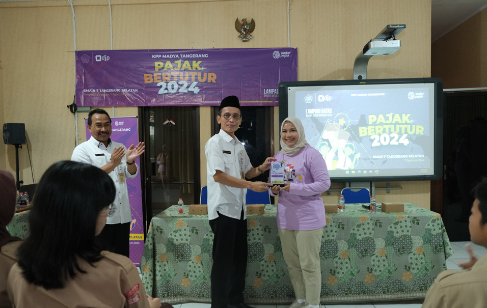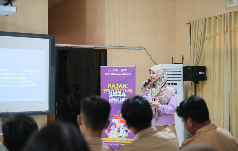 Kantor Pelayanan Pajak (KPP) Madya Tangerang menggelar Pajak Bertutur 2024 dengan tema “Lampaui Batas, Bangkit untuk Indonesia Emas” dengan tagline “Pajak Bertutur 2024: Sehari Mengenal, Selamanya Bangga” di Sekolah Menengah Atas Negeri (SMAN) 7 Kota Tangerang Selatan, Kecamatan Serpong Utara, Kota Tangerang Selatan, Provinsi Banten (Rabu, 7/8).