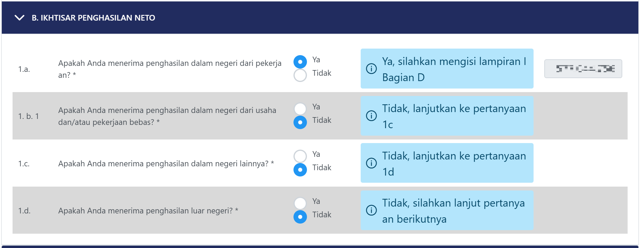 - 14g: Tidak (dalam contoh ini seluruh penghasilan dari pekerjaan)