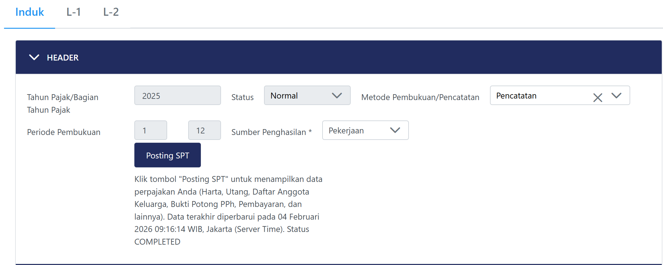 ▶ Setelah melakukan penyesuaian L-1 dan L-2, buka kembali formulir induk.