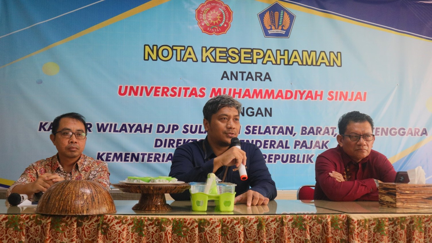 Kantor Pelayanan, Penyuluhan, dan Konsultasi (KP2KP) Sinjai menyelenggarakan kegiatan penandatanganan Kesepakatan Bersama antara Direktorat Jenderal Pajak (DJP) Kementerian Keuangan Republik Indonesia dengan Universitas Muhammadiyah Sinjai tentang Tax Center Universitas Muhammadiyah Sinjai di Ruang Rapat Universitas Muhammadiyah Sinjai, Kelurahan Biringere, Kecamatan Sinjai Utara, Kabupaten Sinjai, Provinsi Sulawesi Selatan (Rabu, 15/11).