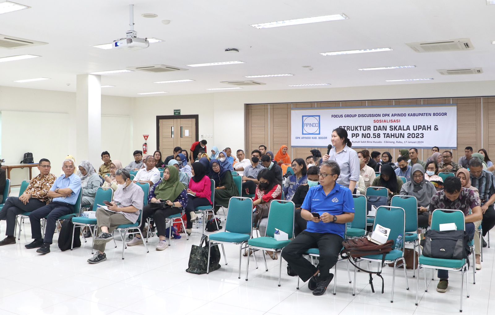 Sebanyak 80 (Delapan Puluh) pengusaha Anggota APINDO Kabupaten Bogor hadir mengikuti kegiatan yang diadakan di Aula Rumah Sakit Bina Husada, Cibinong, Kabupaten Bogor.