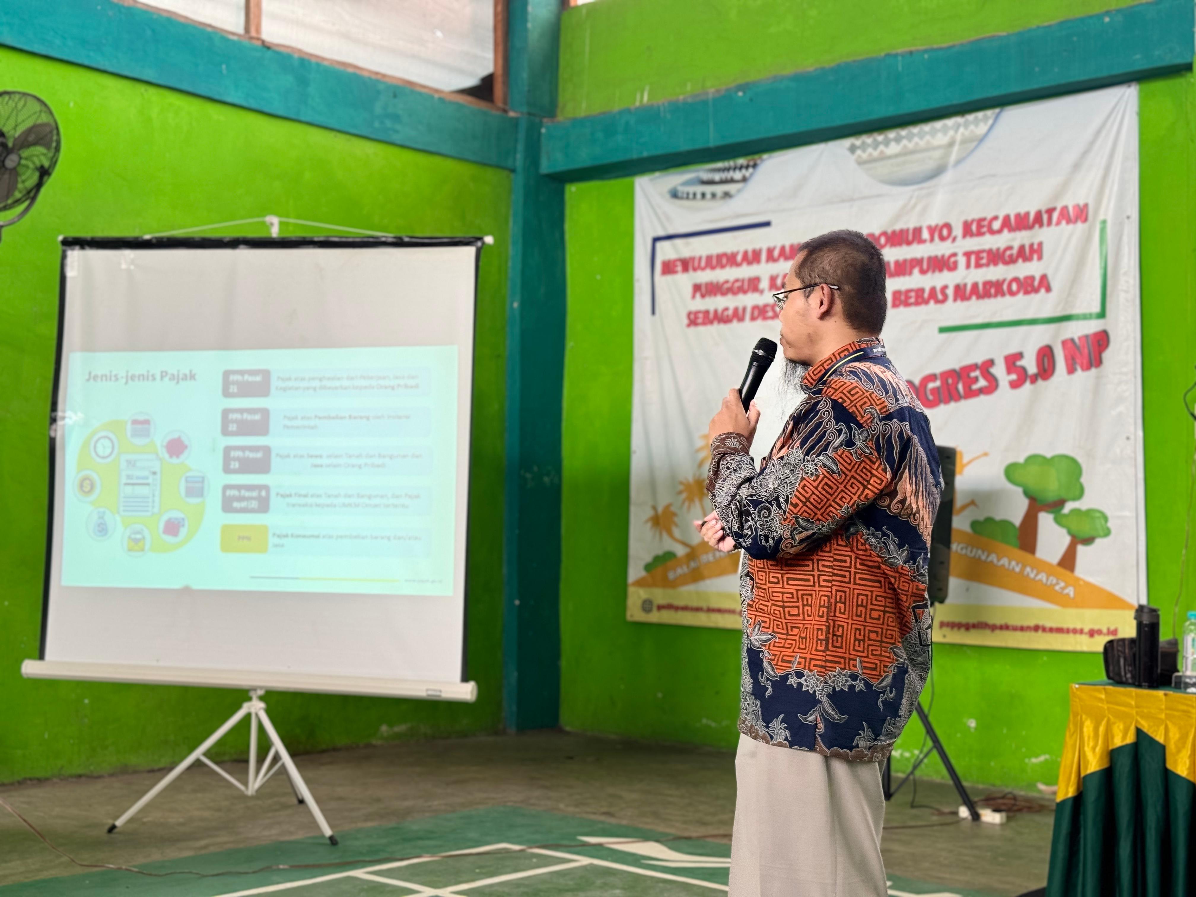 Kantor Pelayanan, Penyuluhan dan Konsultasi Perpajakan (KP2KP) Bandarjaya melakukan audiensi pengisian Surat Pemberitahuan (SPT) Tahunan dan penghitungan pajak dana desa kepada Tenaga Pendamping Professional (TPP) di lingkungan Kabupaten Lampung Tengah yang berlokasi di Aula Balai Kampung Sidomulyo, Kecamatan Punggur, Kabupaten Lampung Tengah (Kamis, 11/1). Kegiatan tersebut dihadiri oleh Kepala Kantor Pelayanan Pajak (KPP) Pratama Metro Muhamad Riza Fahlevi, Kepala KP2KP Bandarjaya Widi Nugroho dan dua Fungsional Asisten Penyuluh, Ardian Mahardi Putera dan Choudory Imam Santoso.