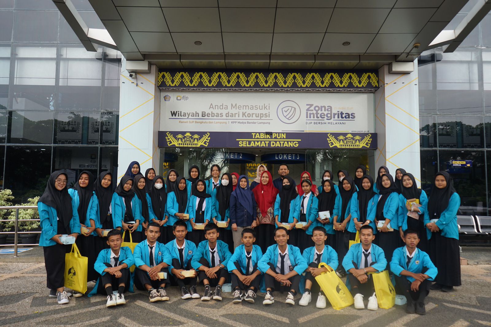 Kantor Pelayanan Pajak (KPP) Madya Bandar Lampung mengawali tahun 2024 dengan menerima kunjungan dari 35 orang siswa-siswi dan lima orang guru SMK Negeri 1 Kotabumi ke Tempat Pelayanan Terpadadu (TPT) KPP Madya Bandar Lampung, Kecamatan Telukbetung Selatan, Kota Bandar Lampung, Lampung (Rabu, 24/1).