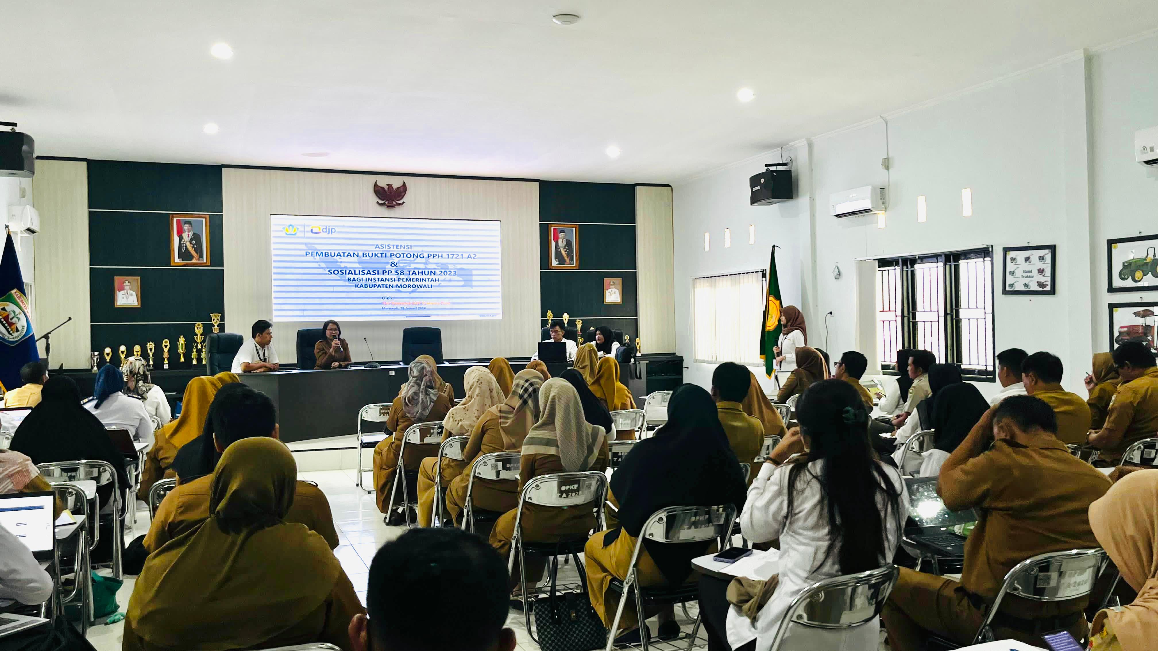 Kantor Pelayanan Pajak (KPP) Pratama Poso mengadakan Sosialisasi Pembuatan Bukti Potong 1721-A2 melalui e-Bupot di Aula Dinas Pertanian, Morowali, Sulawesi Tengah (Senin, 29/1). Sosialisasi ini berfokus pada pemenuhan kewajiban pelaporan Surat Pemberitahuan (SPT), khususnya Aparatur Sipil Negara (ASN) di wilayah Morowali. Acara ini dimulai dari pukul 09.00 s.d. 12.00 WITA yang dihadiri oleh puluhan instansi. Masing-masing instansi diwakili oleh kepala subbagian keuangan yang didampingi oleh bendahara ataupun operator.