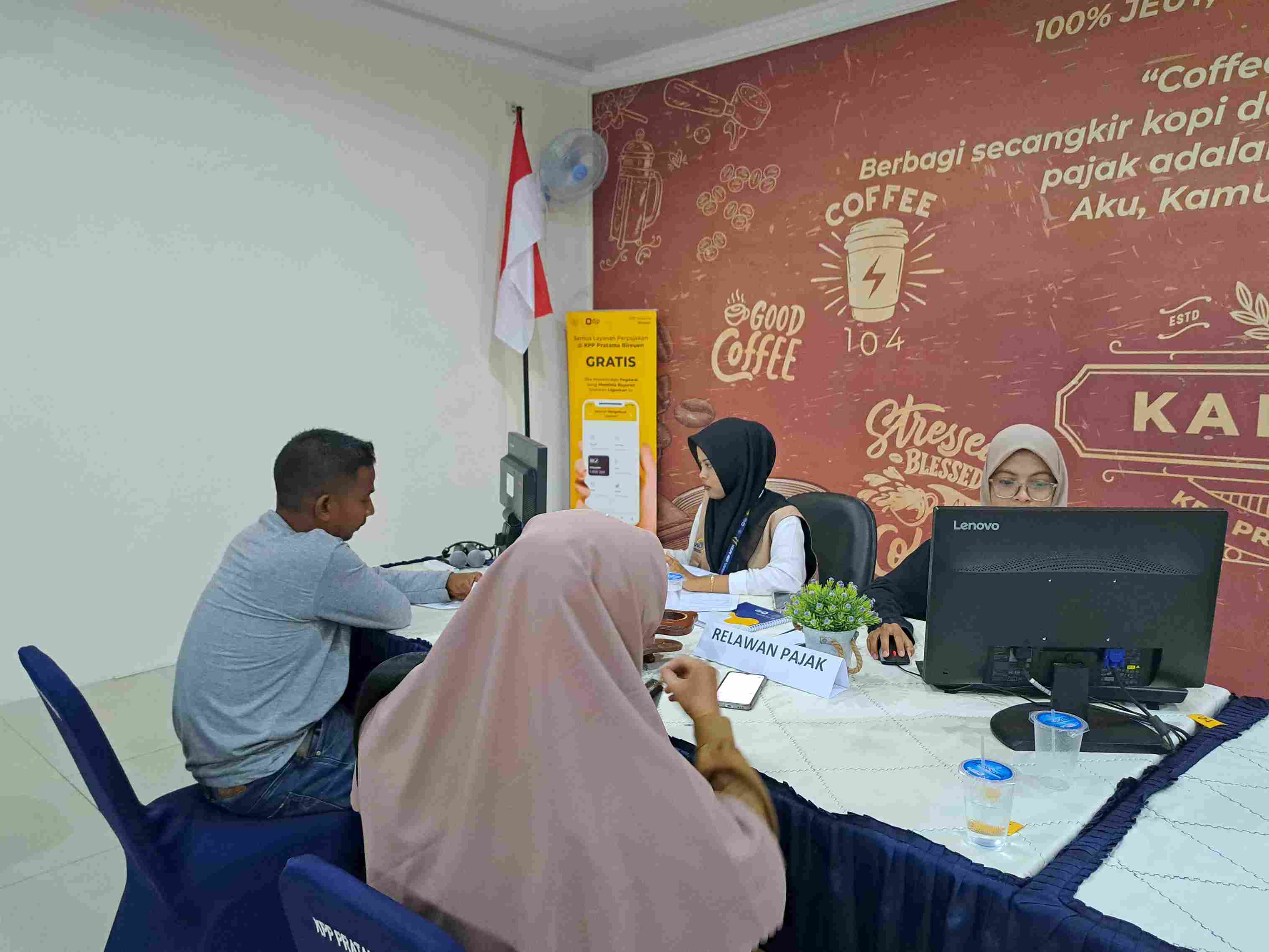 Kantor Pelayanan Pajak (KPP) Pratama Bireuen bersama relawan pajak dari Universitas Islam Kebangsaan Indonesia (UNIKI) Kabupaten Bireuen memberikan asistensi pelaporan Surat Pemberitahuan (SPT) Tahunan kepada wajib pajak di KPP Pratama Bireuen (Senin, 12/2).