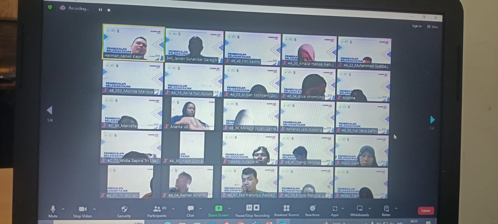 Kantor Wilayah Direktorat Jenderal Pajak (Kanwil DJP) Kepulauan Riau melaksanakan pelatihan kepada relawan pajak dari Politeknik Negeri Batam. Kegiatan berlangsung secara daring di ruang virtual Kanwil DJP Kepri, Kota Batam (Selasa, 6/2).