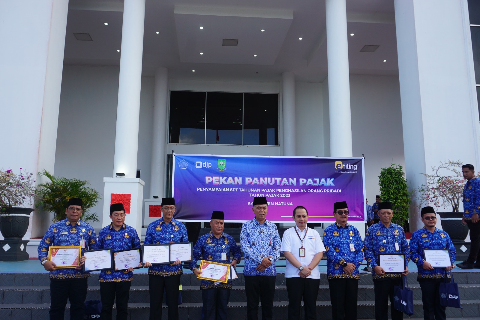 Pemerintah Kabupaten (Pemkab) Natuna menyampaikan penghargaan atas kepatuhan pelaporan Surat Pemberitahuan (SPT) Tahunan oleh sejumlah organisasi perangkat daerah (OPD) pada Pekan Panutan (Senin, 19/2). Perayaan ini diselenggarakan di Kompleks Perkantoran Bupati Natuna, Kepulauan Riau dengan menggandeng Kantor Pelayanan, Penyuluhan, dan Konsultasi Perpajakan (KP2KP) Ranai.