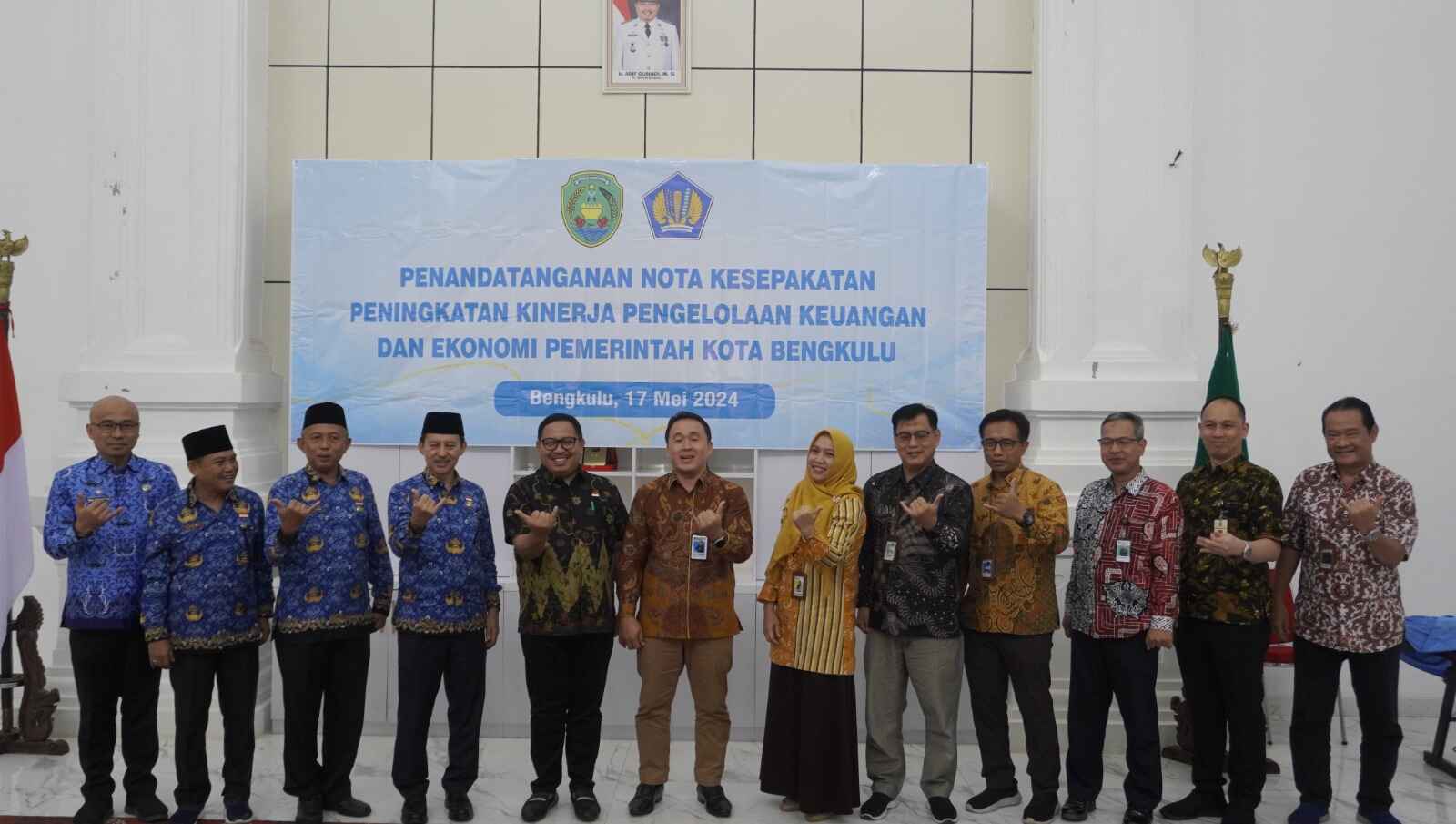 Pemerintah Daerah Kota Bengkulu dan Kemenkeu Satu menyepakati Memorandum of Understanding (MoU) mengenai peningkatan kinerja pengelolaan keuangan dan ekonomi pemerintah daerah Kota Bengkulu di Pendopo Merah Putih Kota Bengkulu, Kelurahan Pekan Sabtu, Kecamatan Selebar, Kota Bengkulu (Jumat, 17/5).