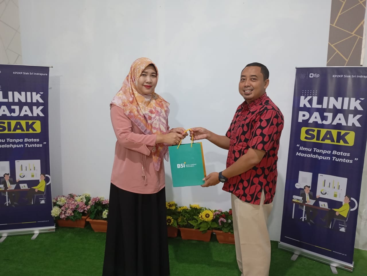 Kepala Kantor Pelayanan, Penyuluhan, dan Konsultasi Perpajakan (KP2KP) Siak Muhammad, menerima kunjungan Kepala Bank Syariah Indonesia (BSI) Cabang Siak Yuyun Sundari di Klinik Pajak KP2KP Siak (Jumat,21/6). Kunjungan ini bertujuan untuk mempererat silaturahmi antara BSI dan KP2KP Siak serta membahas layanan pembayaran pajak melalui yang disediakan oleh Bank Syariah Indonesia.