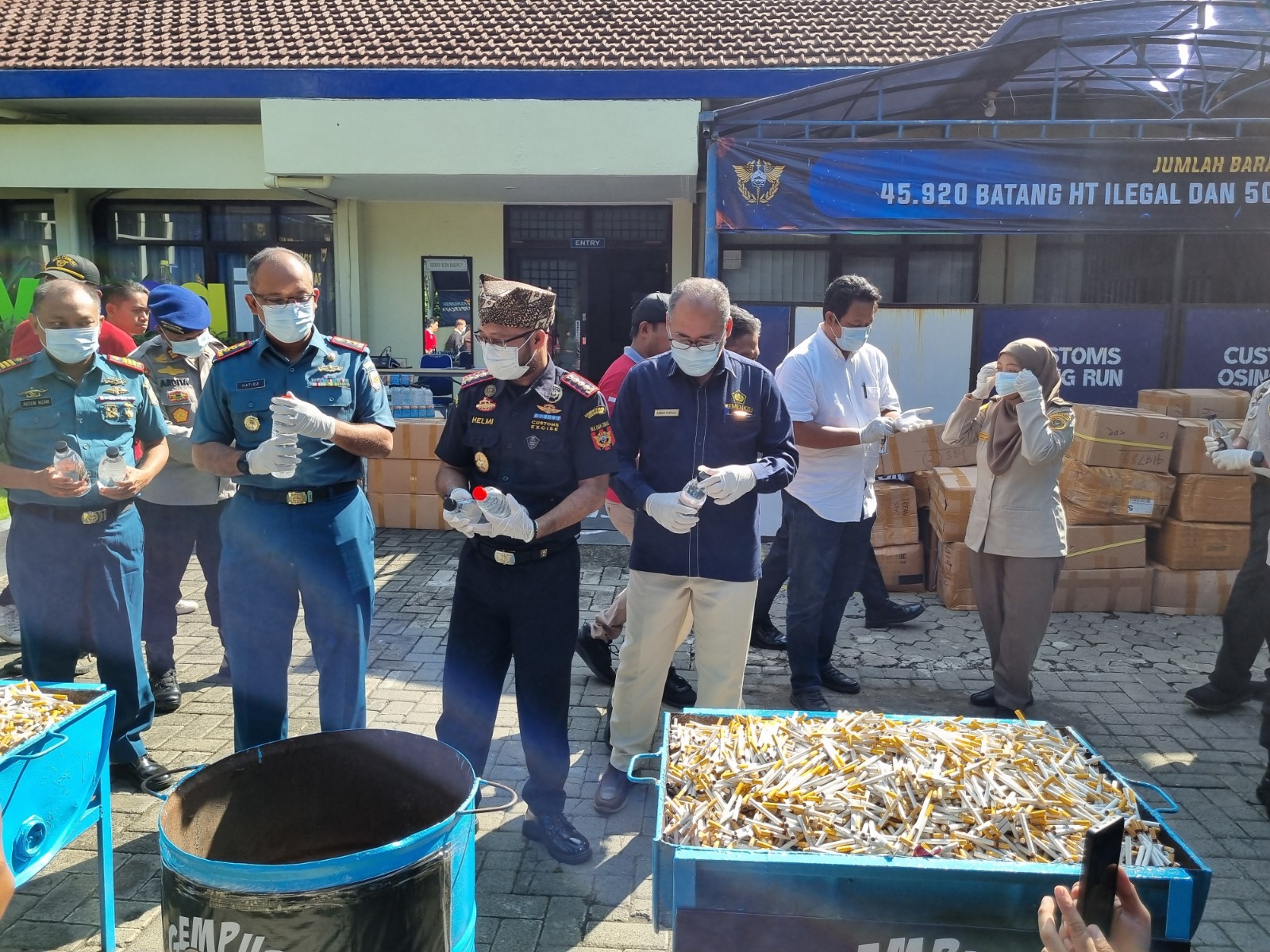 Kepala Kantor Pelayanan Pajak (KPP) Pratama Banyuwangi Ahmad Fudholi bersama Kepala Kantor Bea dan Cukai Banyuwangi Latif Helmi secara bersama-sama melakukan pemusnahan Barang Milik Negara (BMN) eks hasil penindakan Kantor Bea dan Cukai Banyuwangi. Kegiatan pemusnahan BMN dilaksanakan di halaman Kantor Bea dan Cukai Banyuwangi, Jalan Raya Situbondo-Banyuwangi No. 37, Bulusan, Kalipuro, Banyuwangi, Jawa Timur (Rabu, 12/6).