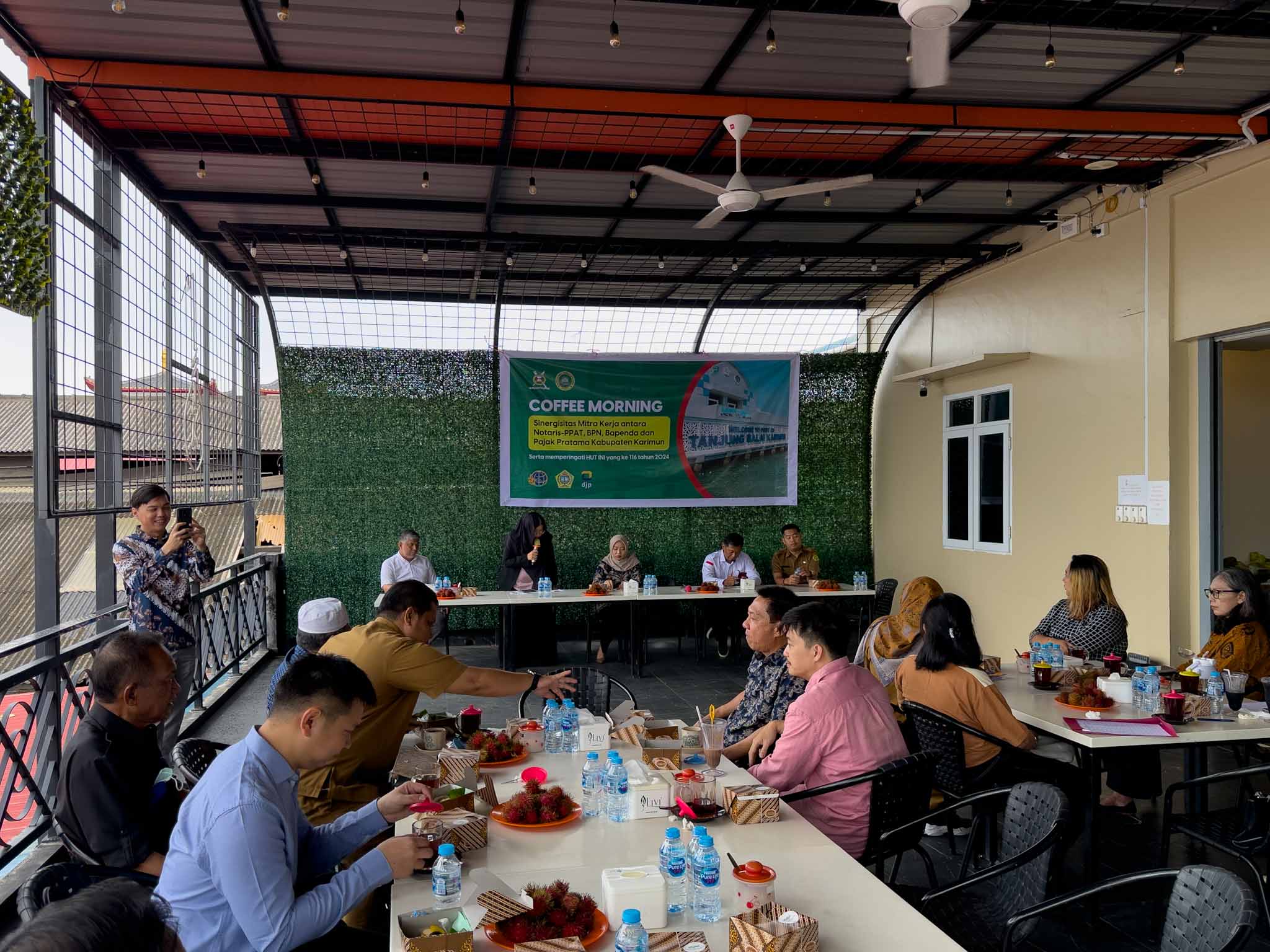 Coffee morning yang bertujuan untuk meningkatkan sinergi antara notaris, Badan Pertanahan Nasional (BPN) Karimun, Badan Pendapatan Daerah (Bapenda) Kabupaten Karimun serta KPP Pratama Tanjung Balai Karimun. Acara dihadiri oleh Ketua Pengurus INI Wilayah Karimun Zul Fahri, perwakilan BPN Karimun, perwakilan dari Bapenda Kabupaten Karimun, serta narasumber dari KPP Pratama Tanjung Balai Karimun yang diwakili oleh Fungsional Asisten Penyuluh Pajak Mahir Evva Yulinda.