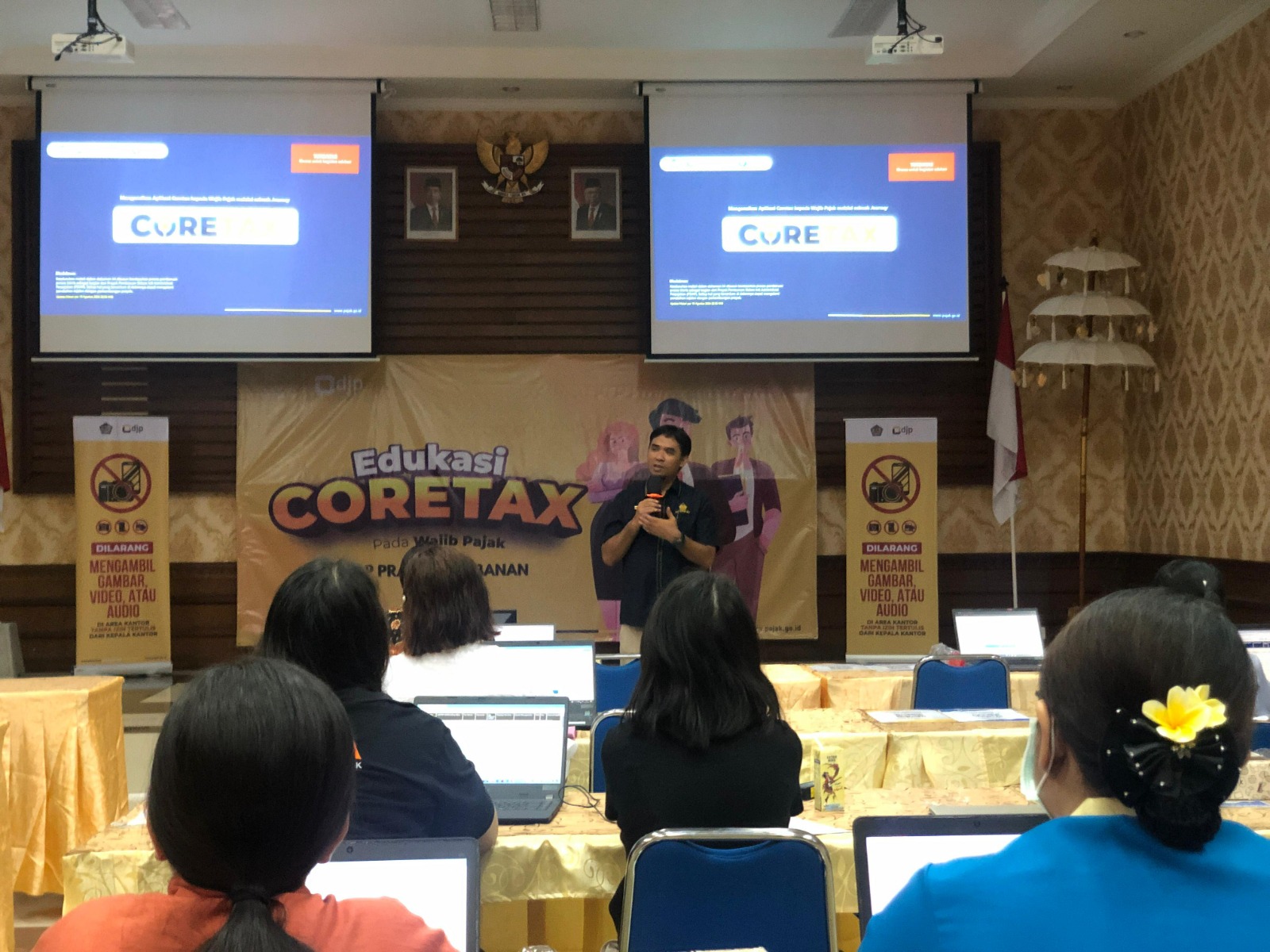Kantor Pelayanan Pajak (KPP) Pratama Tabanan menyelenggarakan edukasi aplikasi Coretax di Ruang Aula Kantor, Tabanan (Rabu, 4/9). Coretax merupakan aplikasi sistem perpajakan baru dalam rangka reformasi sistem inti administrasi perpajakan di Direktorat Jenderal Pajak (DJP).