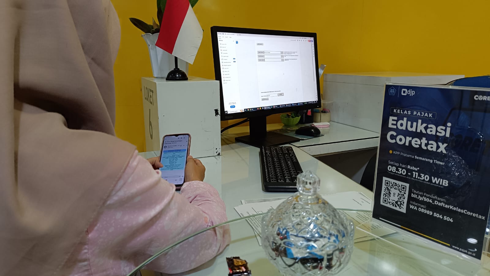 "Saya mau laporan SPT Mbak, harusnya 1 tahun sekali ya?" ungkap Heni kepada Tiya petugas Helpdesk yang saat itu bertugas.