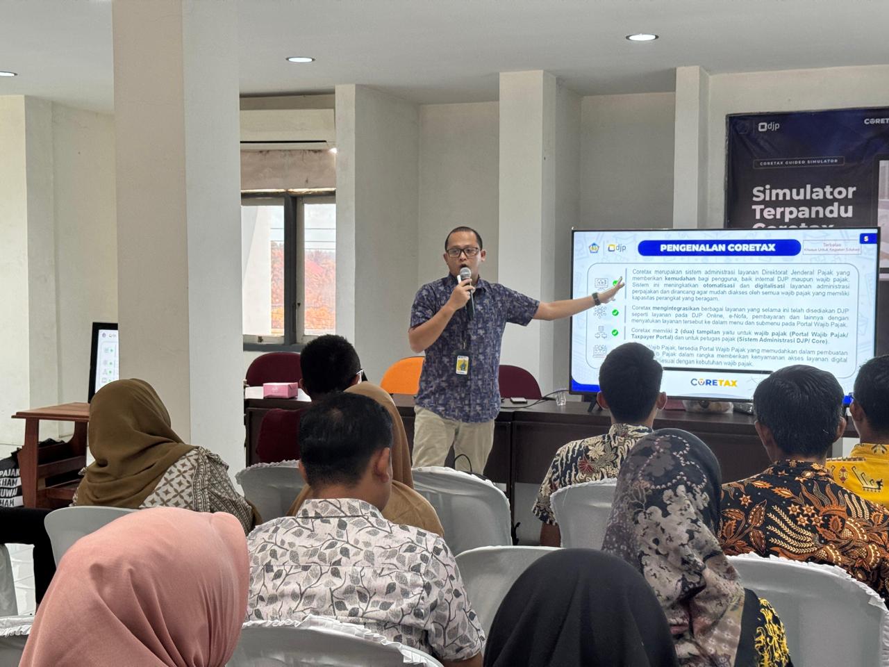 Untuk meningkatkan pengetahuan dan keterampilan wajib pajak, Kantor Pelayanan, Penyuluhan, dan Konsultasi Perpajakan (KP2KP) Pringsewu berkolaborasi dengan Kantor Pelayanan Pajak (KPP) Pratama Natar mengadakan kegiatan edukasi terkait Core Tax Administration System (CTAS) bertempat di Aula KP2KP Pringsewu, Jalan Kyai Haji Gholib Nomor 959, Pringsewu Barat, Kab. Pringsewu, Lampung (Kamis, 14/11).
