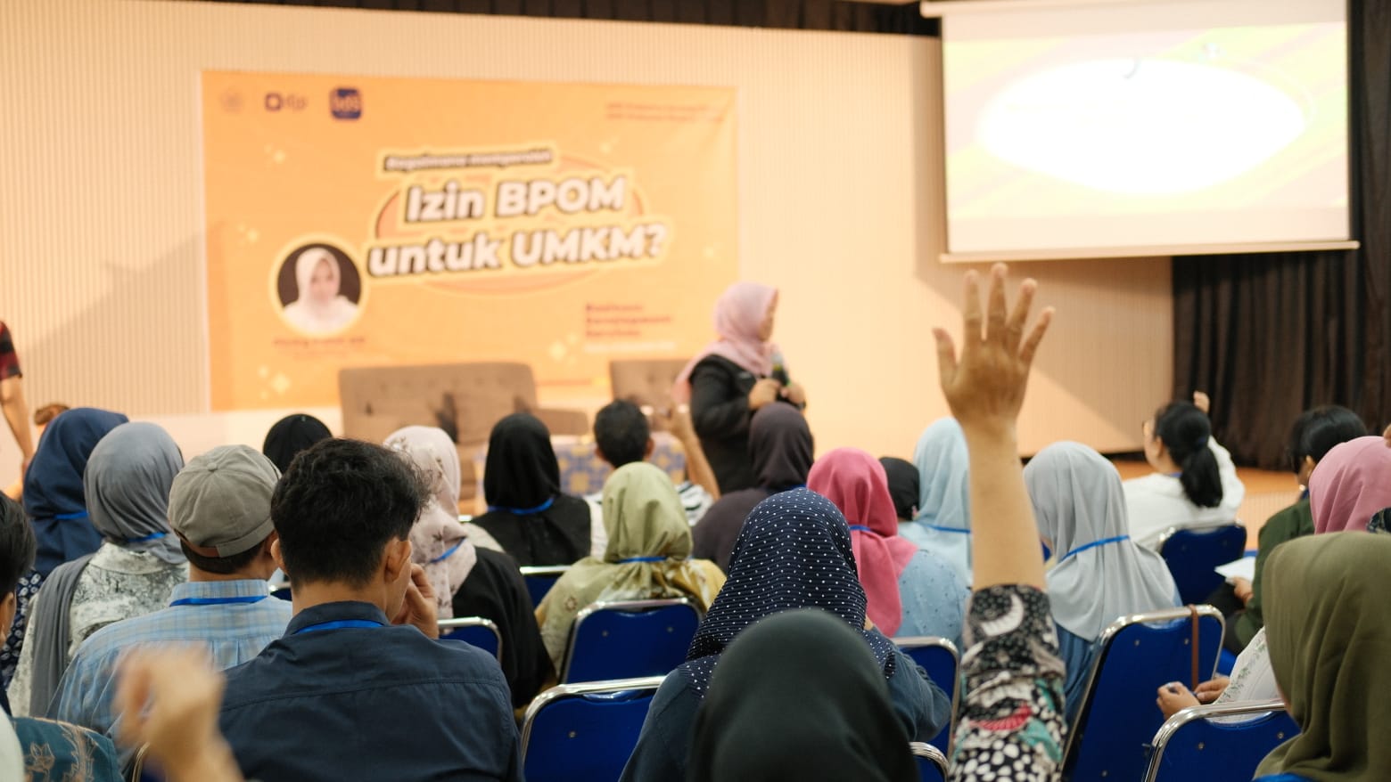 Dalam sosialisasinya, Dianing Pratiwi menjelaskan secara detail mengenai persyaratan dan prosedur yang harus dipenuhi oleh UMKM untuk mendapatkan izin edar BPOM. Para peserta UMKM yang hadir tampak mengajukan berbagai pertanyaan terkait perizinan.