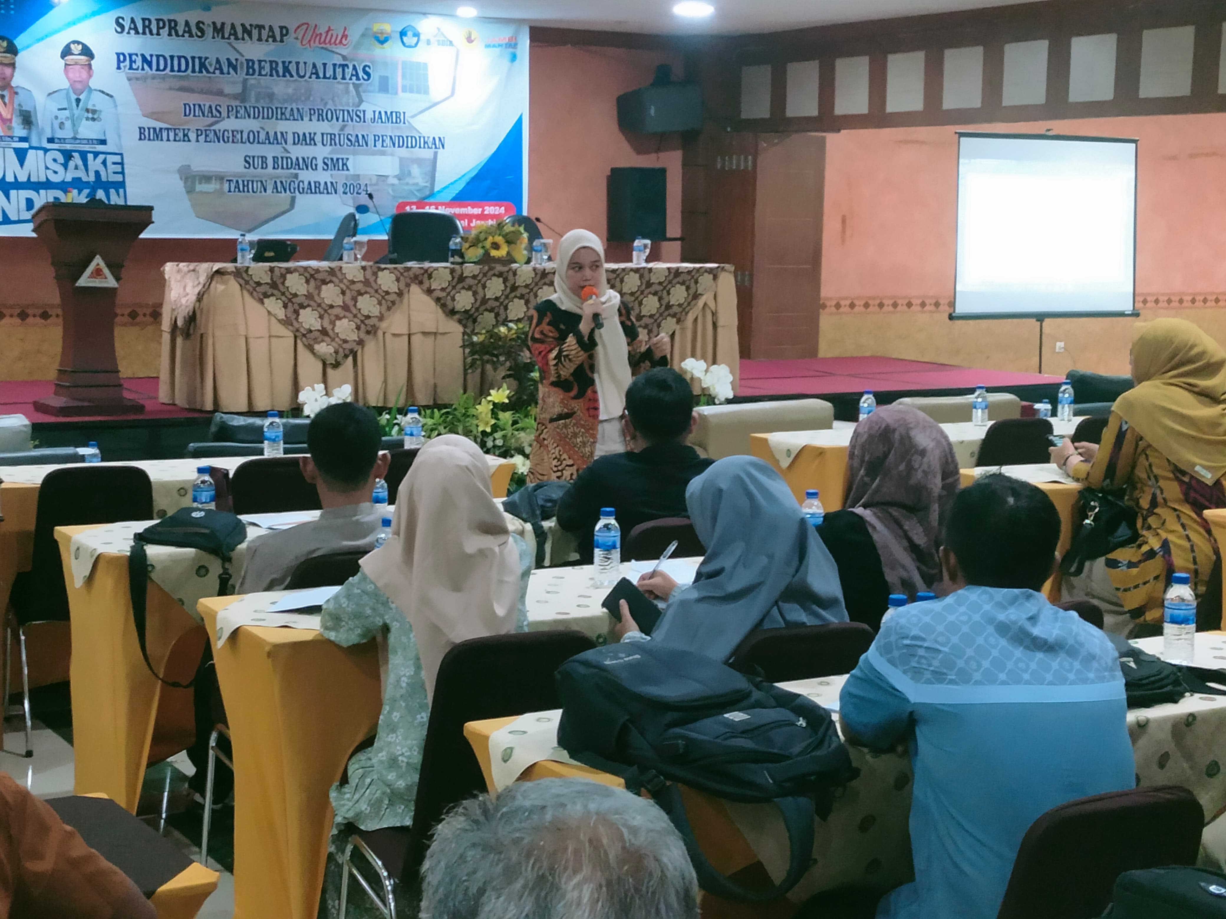 Kantor Pelayanan Pajak (KPP) Pratama Jambi Telanaipura menghadiri sosialisasi perpajakan terkait pengelolaan Dana Alokasi Khusus (DAK) Bidang Pendidikan Sub Bidang SMK yang diselenggarakan oleh Dinas Pendidikan Provinsi Jambi di Grand Hotel Jambi (Jumat, 15/11). Peserta acara ini terdiri dari Kepala SMK penerima DAK Fisik Tahun Anggaran 2024, Ketua Pelaksana Swakelola Sekolah, Bendahara DAK Fisik (Swakelola) Sekolah, dan Fasilitator DAK Fisik (Swakelola) Sekolah.