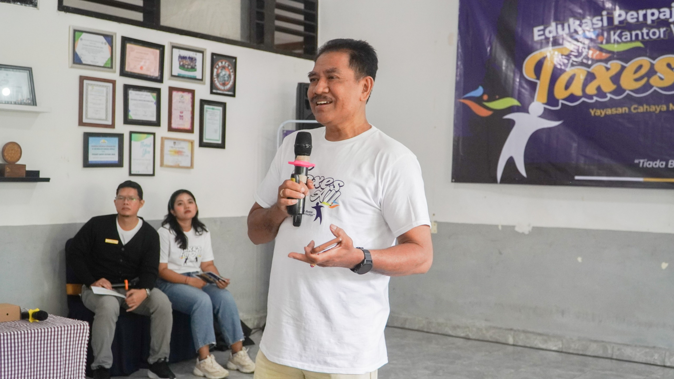 “Tema acara ini adalah Taxes For All ini memang pajak itu untuk semua. Ini ada dua sisi, satu bahwa pajak adalah kewajiban kita sebagai warga negara tapi nantinya pajak itu akan dinikmati oleh seluruh warga negara semua disini,” ujar Darmawan saat memberikan sambutan.