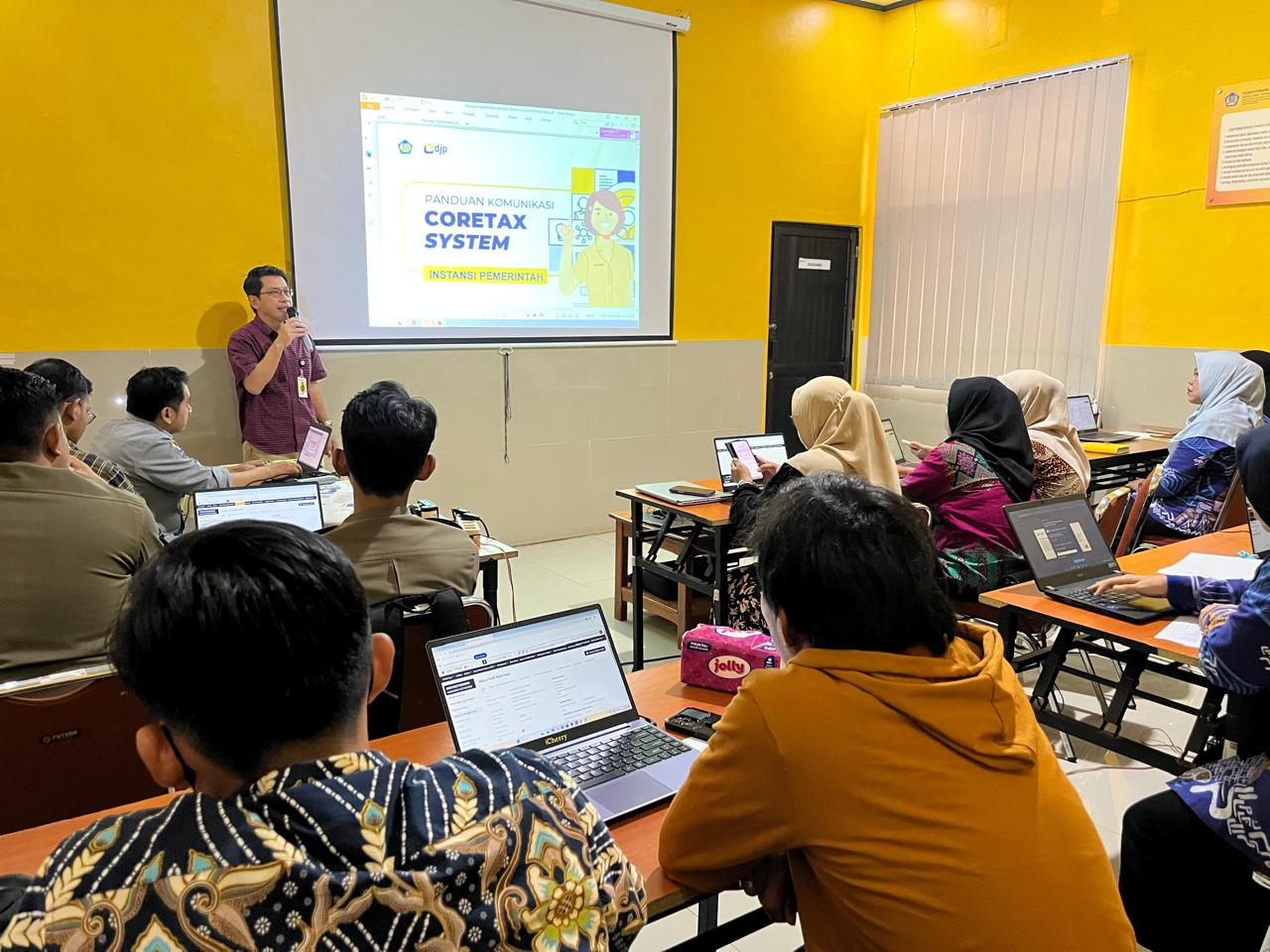 Kantor Pelayanan, Penyuluhan, dan Konsultasi Perpajakan (KP2KP) Pangkajene melaksanakan Edukasi Coretax Tahap II yang dilaksanakan di Aula KP2KP Pangkajene, Kabupaten Pangkep (Kamis, 28/11). Dua belas peserta yang merupakan perwakilan Wajib Pajak Instansi Pemerintah yang terdaftar di wilayah KP2KP Pangkajene menyimak edukasi Coretax ini.