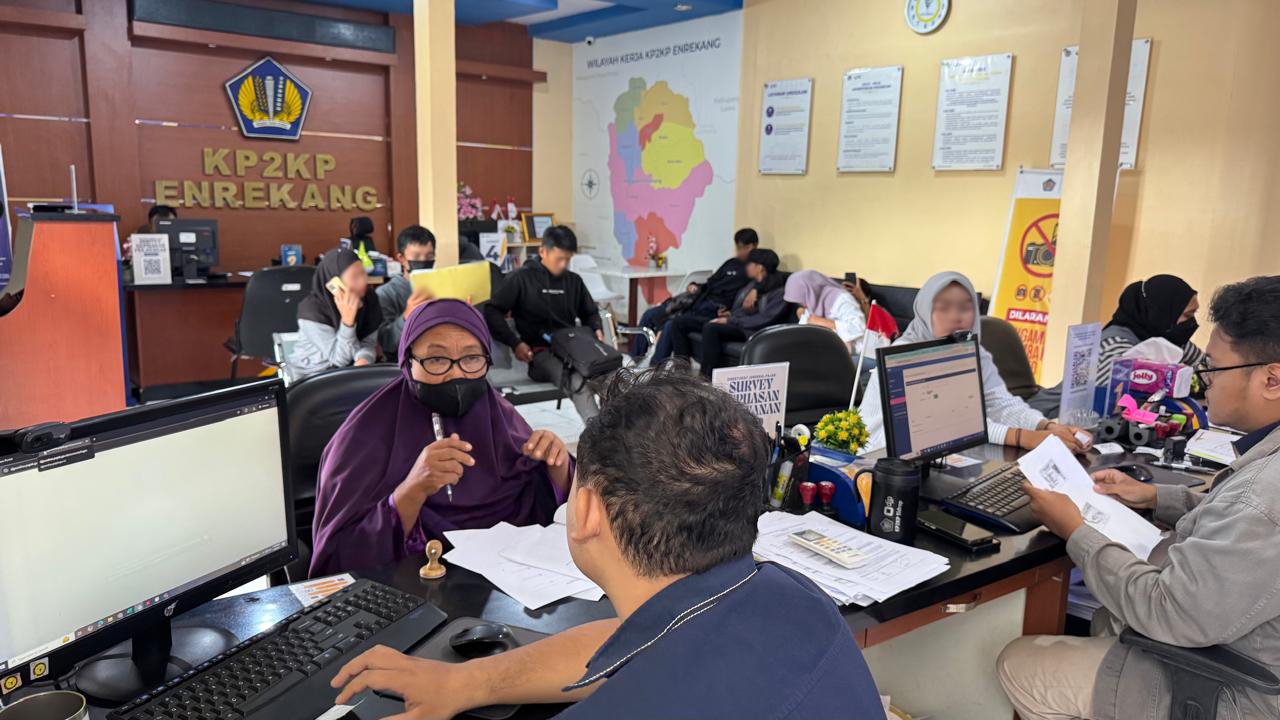 Kantor Pelayanan, Penyuluhan, dan Konsultasi Perpajakan (KP2KP) Enrekang menerima kunjungan puluhan wajib pajak yang menghadapi kendala dalam melaporkan Surat Pemberitahuan (SPT) Tahunan secara daring melalui laman djponline.pajak.go.id di Kabupaten Enrekang (Rabu, 8/1). Sebagian besar dari wajib pajak yang datang mengalami masalah karena tidak kunjung menerima kode verifikasi saat ingin masuk ke akun DJP Online milik wajib pajak.