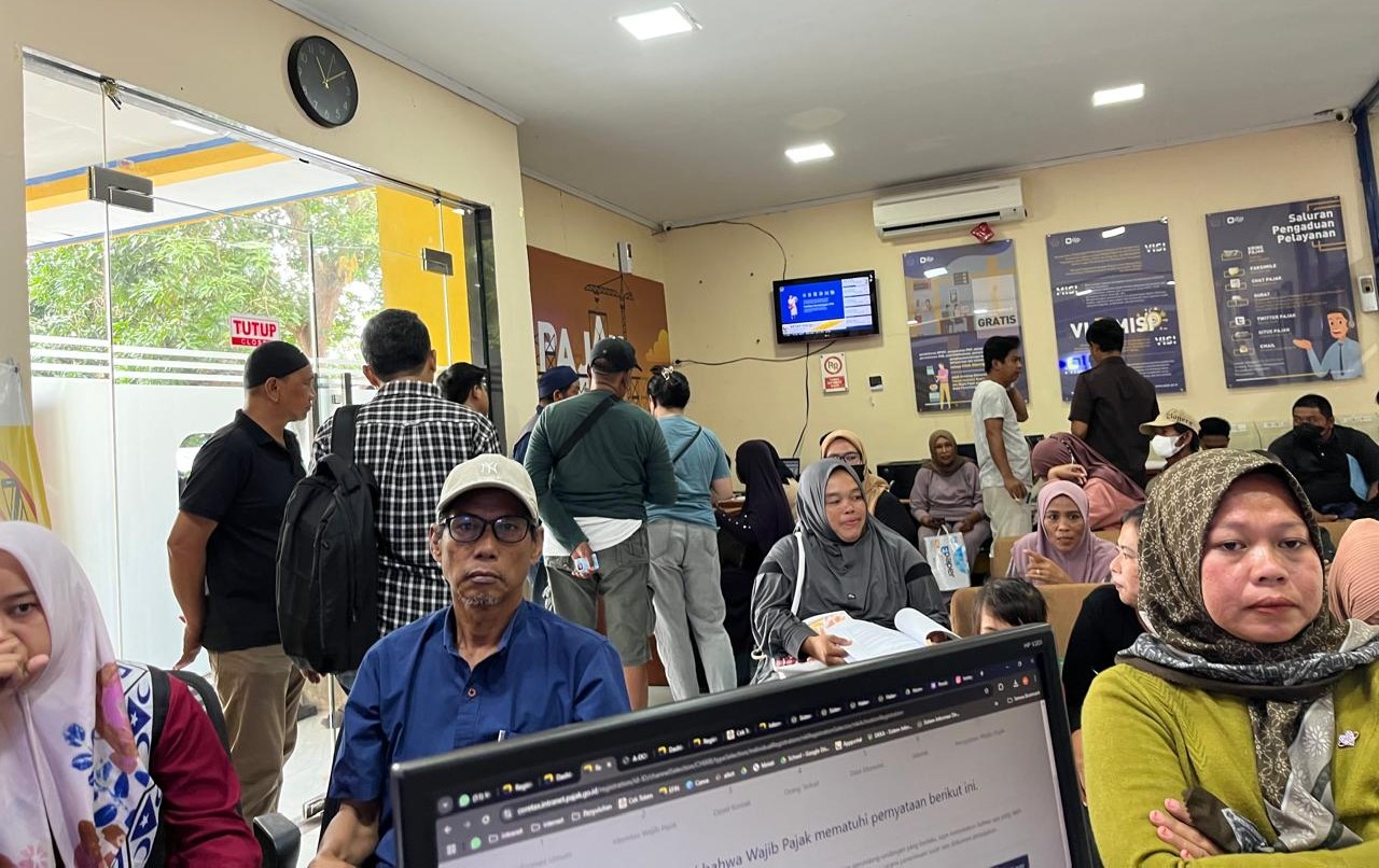 Puluhan wajib pajak Rappang memadati Kantor Pelayanan, Penyuluhan, dan Konsultasi Perpajakan (KP2KP) Sidrap untuk mendapat asistensi pelaporan SPT Tahunan 2024 di KP2KP Sidrap, Kabupaten Sidenreng (Senin, 19/1).