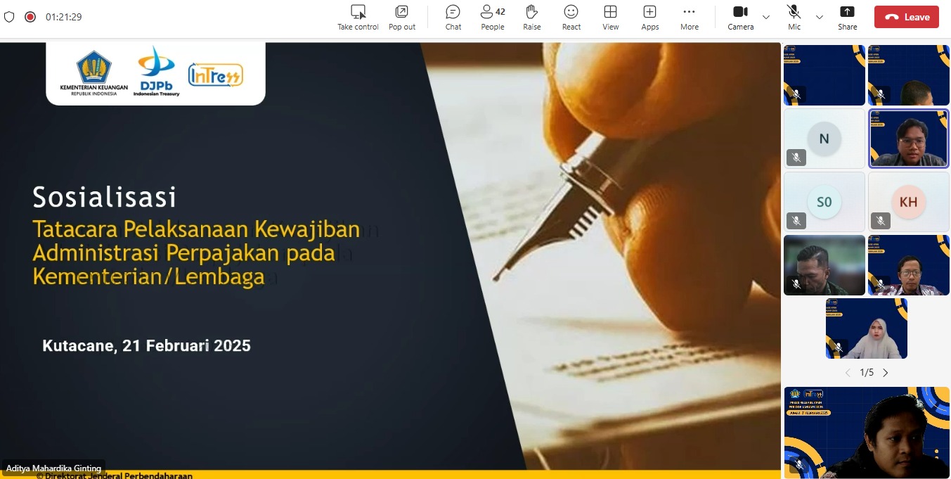 Kantor Pelayanan, Penyuluhan, dan Konsultasi Perpajakan (KP2KP) Kutacane bersama Kantor Pelayanan Perbendaharaan Negara (KPPN) Kutacane menyelenggarakan kegiatan Press Release Pelaksanaan Anggaran Pendapatan dan Belanja Negara (APBN) Periode Januari 2025 secara daring (Jumat, 21/2).