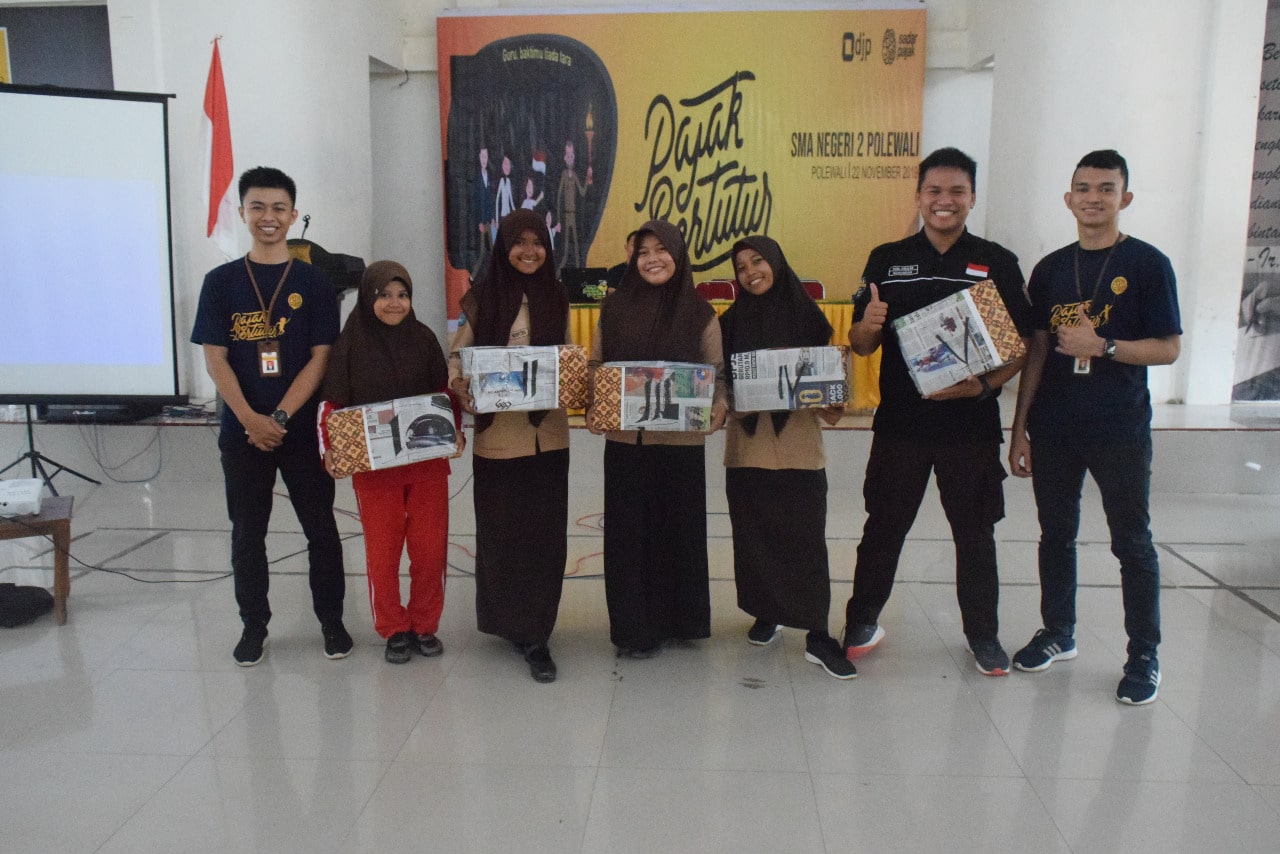Kantor Pelayanan Penyuluhan dan Konsultasi Perpajakan (KP2KP) Polewali melangsungkan kegiatan edukasi perpajakan pada generasi muda melalui acara Pajak Bertutur yang diadakan di SMAN 2 Polewali (Jumat, 22/11). Pajak Bertutur merupakan program tahunan Direktorat Jenderal Pajak yang diadakan di berbagai jenjang pendidikan sepeti SD, SMP, SMA, hingga Perguruan Tinggi.