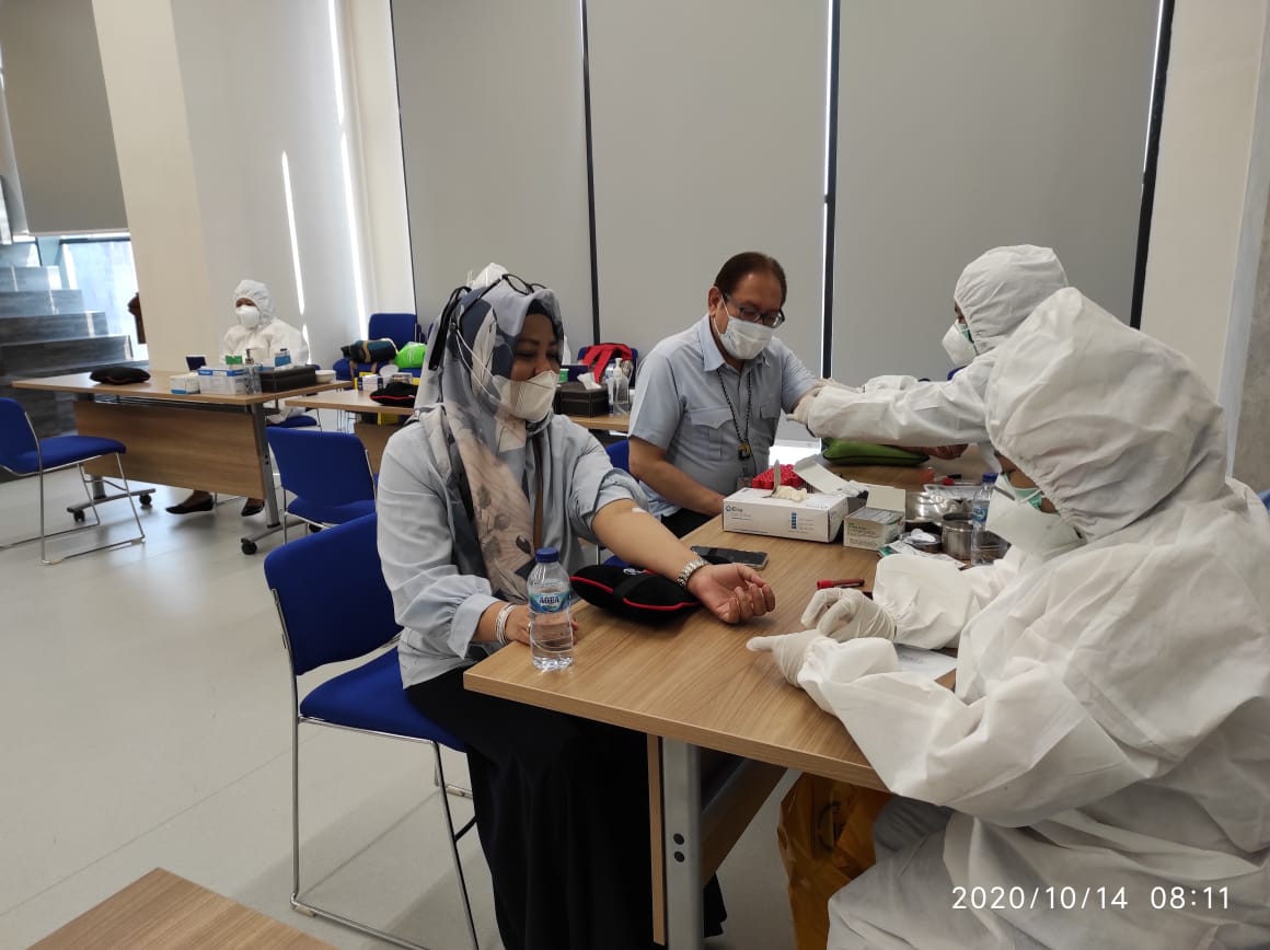 Dalam rangka memaksimalkan kinerja guna memberikan pelayanan prima kepada wajib pajak, Kantor Wilayah DJP Jakarta Timur menyelenggarakan Rapid Test Covid-19 bekerja sama dengan Laboratorium Parahita. Rapid Test Covid-19 yang diselenggarakan di Aula Lantai 9 Gedung Pulomas Office ini diikuti oleh seluruh pegawai, security, office boy, dan cleaning service di Kantor Wilayah DJP Jakarta Timur (Rabu, 14/10). Tes tersebut bertujuan untuk memantau kondisi kesehatan pegawai sehingga pekerjaan dapat berjalan dengan lancar.