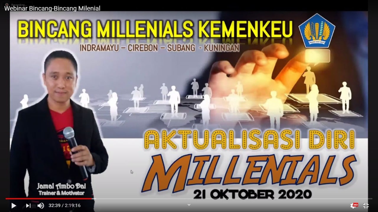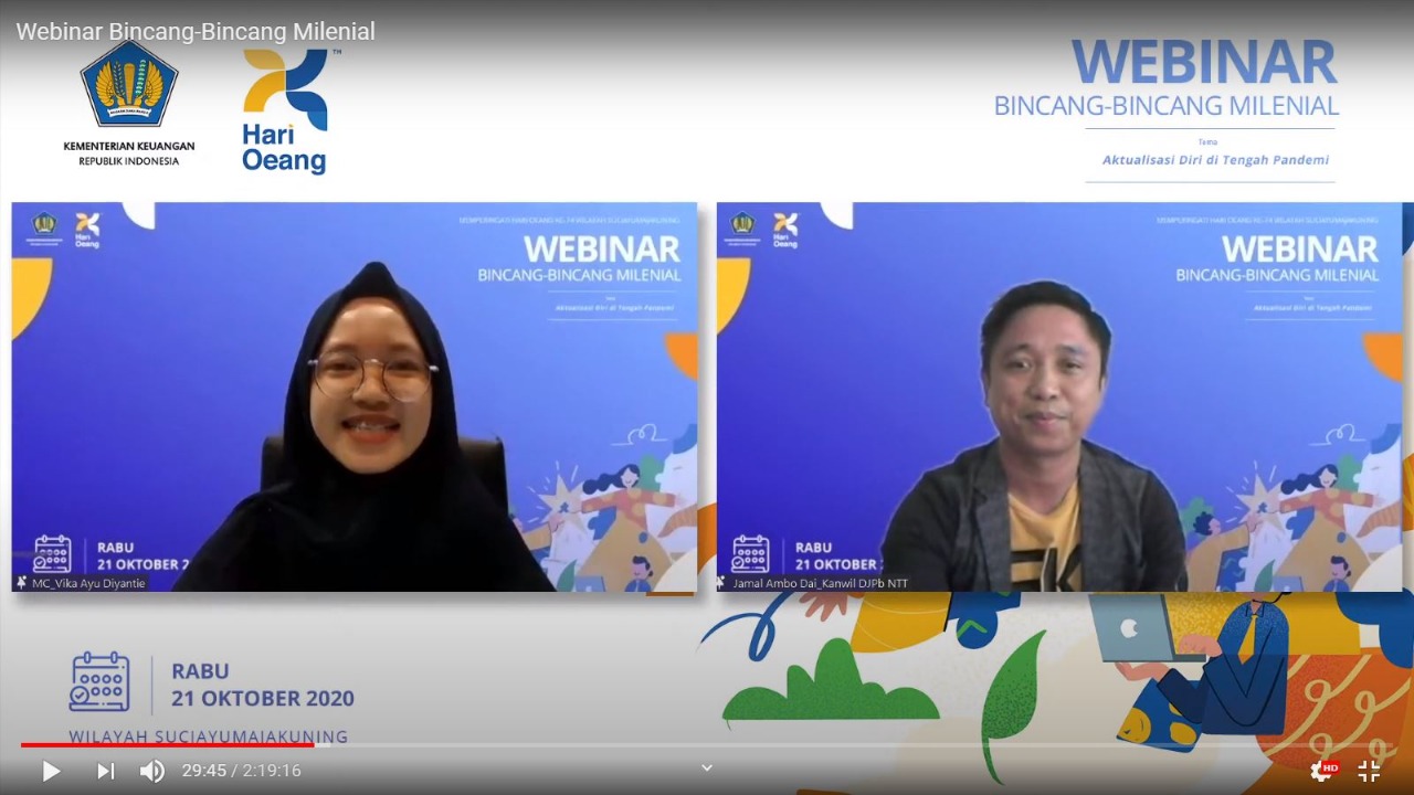 Memperingati Hari Oeang ke 74 di Lingkungan Kementerian Keuangan wilayah Suciayumajakuning, KPP Pratama Indramayu menggelar acara Bincang-Bincang Milenial: Aktualisasi Diri di Tengah Pandemi secara daring menggunakan aplikasi Zoom di Indramayu (Rabu, 21/10).