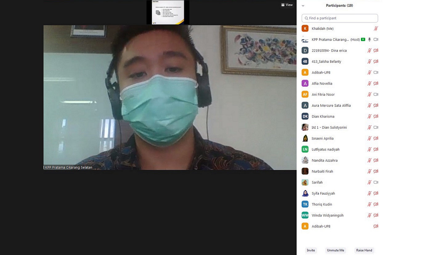 Kantor Pelayanan Pajak (KPP) Pratama Cikarang Selatan mengadakan pelatihan via zoom kepada para Relawan Pajak dari Universitas Pelita Bangsa melalui media telekonferensi di Bekasi (Selasa, 9/2).