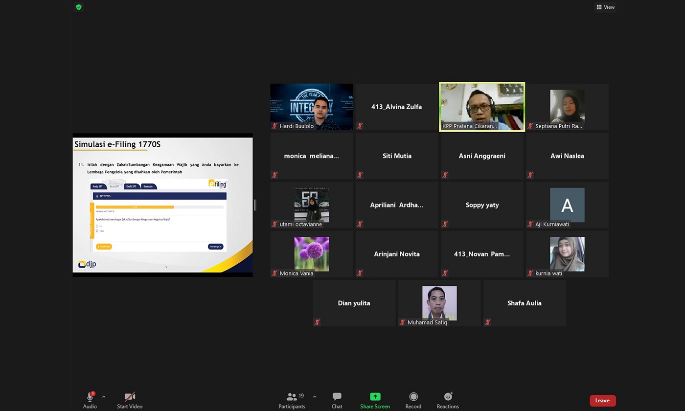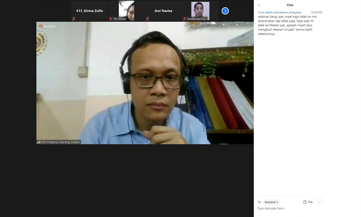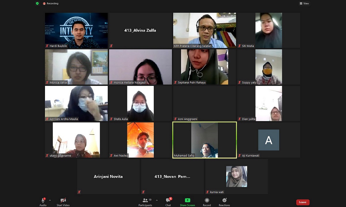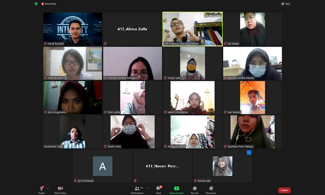 Kantor Pelayanan Pajak (KPP) Pratama Cikarang Selatan mengadakan pelatihan via zoom kepada para Relawan Pajak dari President University melalui media Zoom Meeting di Bekasi (Rabu, 10/2).