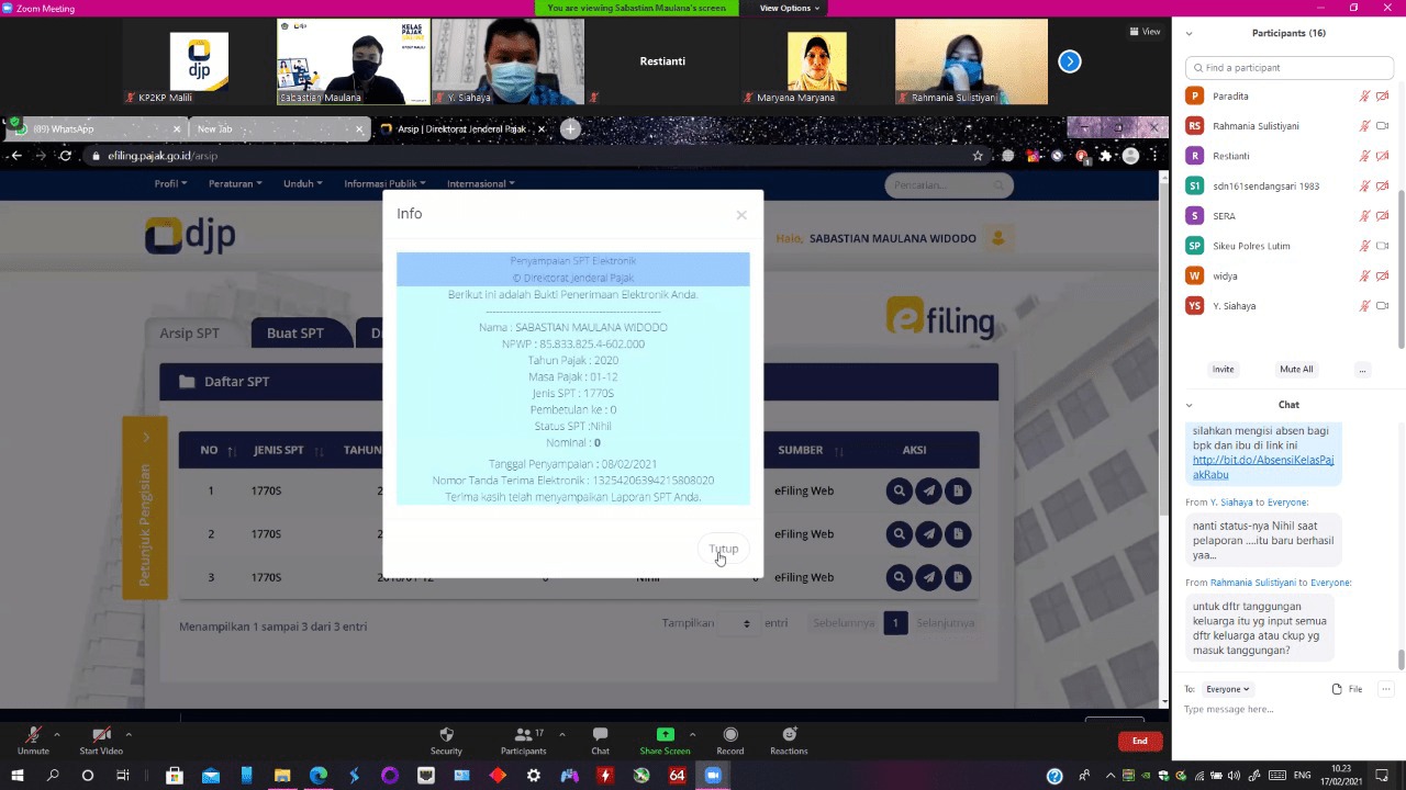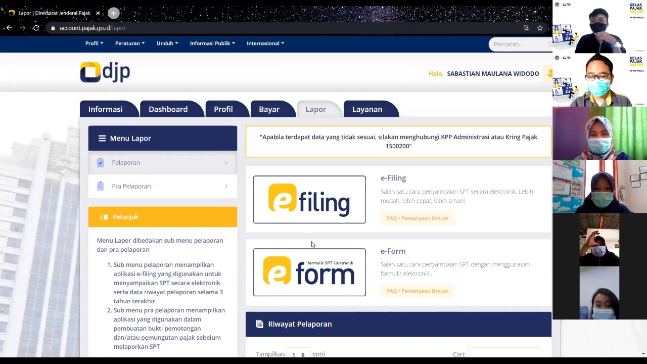 Kelas pajak daring ini sendiri kembali diadakan mengingat cukup tingginya permintaan wajib pajak akan bimbingan pelaporan SPT secara daring. Pelaporan SPT Tahunan secara e-Filing sudah menjadi pilihan banyak wajib pajak. Hal ini bukan tanpa alasan karena dengan melaporkan SPT secara online, wajib pajak dapat melaksanakan kewajiban perpajakannya tanpa harus datang ke kantor pajak di masa kenormalan baru ini.