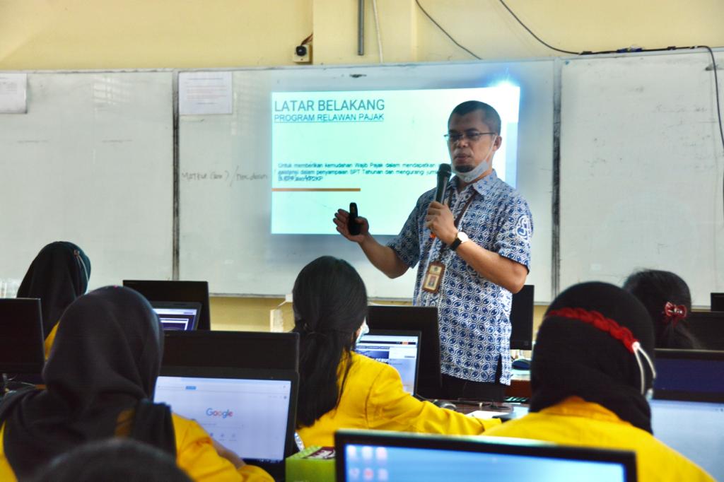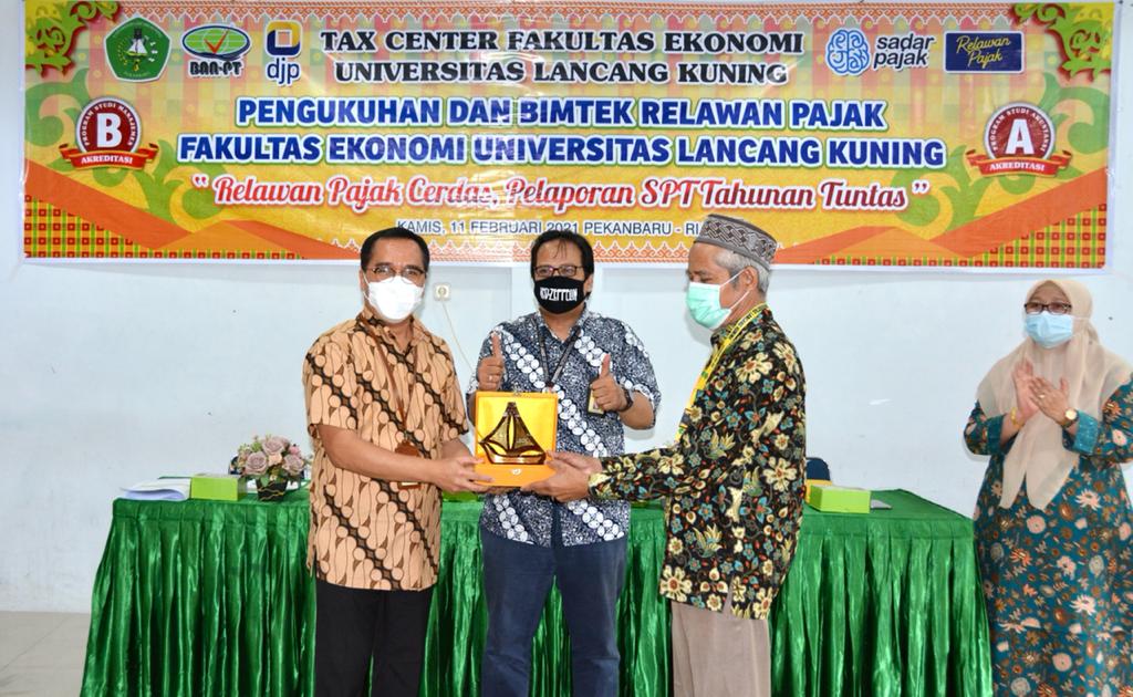 Kantor Wilayah DJP Riau melakukan Pengukuhan dan Bimbingan Teknis Relawan Pajak tahun 2021 terhadap mahasiswa dan mahasiswi dari Universitas Lancang Kuning (UNILAK) di Fakultas Ekonomi Universitas Lancang Kuning, Riau (Kamis, 11/2). Acara diikuti oleh 20 orang Mahasiswa. Asprilantomiardiwidodo selaku Kepala Bidang Penyuluhan Pelayanan dan Hubungan Masyarakat (P2HuMas) hadir untuk melakukan pengukuhan Relawan Pajak dari UNILAK.