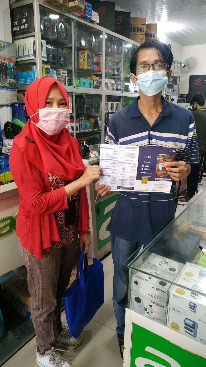 Petugas dari Kantor Pelayanan Pajak (KPP) Pratama Kisaran mendatangi tempat usaha wajib pajak di kawasan pertokoan Kabupaten Asahan, Sumatera Utara (Jumat, 26/3). Kegiatan ini dilakukan untuk mengajak warga, khususnya Wajib Pajak Orang Pribadi Usahawan, agar segera melaporkan Surat Pemberitahuan (SPT) Tahunan Pajak Penghasilan (PPh) Orang Pribadi.