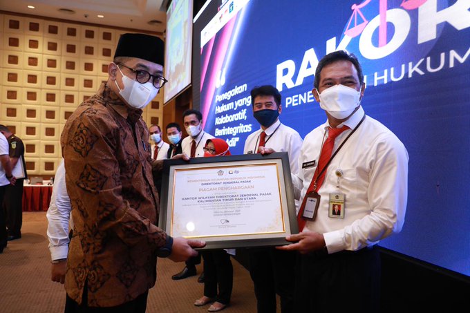 Kantor Wilayah DJP Kalimantan Timur dan Utara menerima penghargaan atas prestasi sebagai Unit Pelaksana Penegakan Hukum dengan Kinerja Penyelesaian Kegiatan Penegakan Hukum Terbaik Ketiga Direktorat Jenderal Pajak Tahun 2020 (Senin, 29/3). Penghargaan diserahkan langsung oleh Direktur Jenderal Pajak Suryo Utomo kepada Kepala Kanwil DJP Kaltimtara Max Darmawan di Kantor Pusat DJP Jakarta.