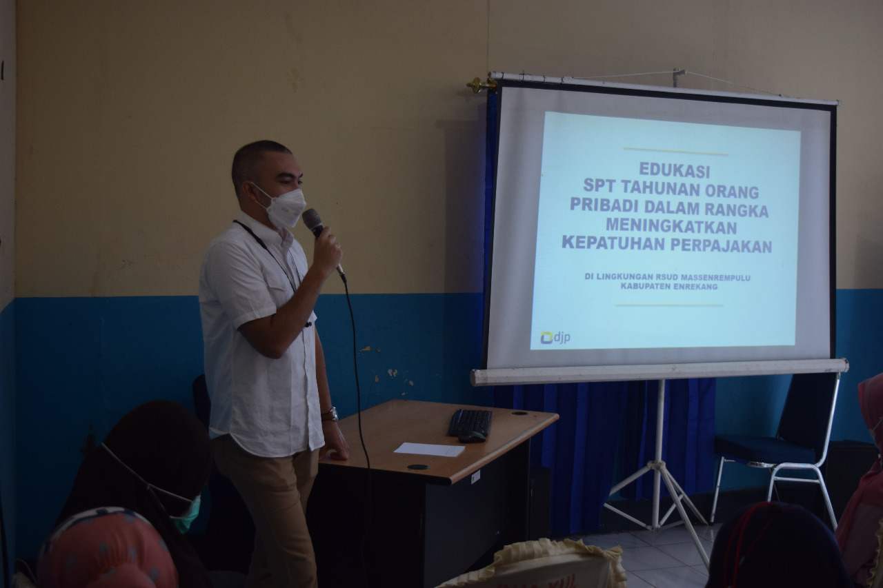 Kantor Pelayanan Penyuluhan dan Konsultasi Perpajakan (KP2KP) Enrekang melakukan kegiatan edukasi perpajakan di lingkungan Rumah Sakit Umum Daerah (RSUD) Massenrempulu Kabupaten Enrekang (Kamis, 4/3). Acara ini dilaksanakan di aula kelas pajak KP2KP Enrekang, Enrekang, Sulawesi Selatan.