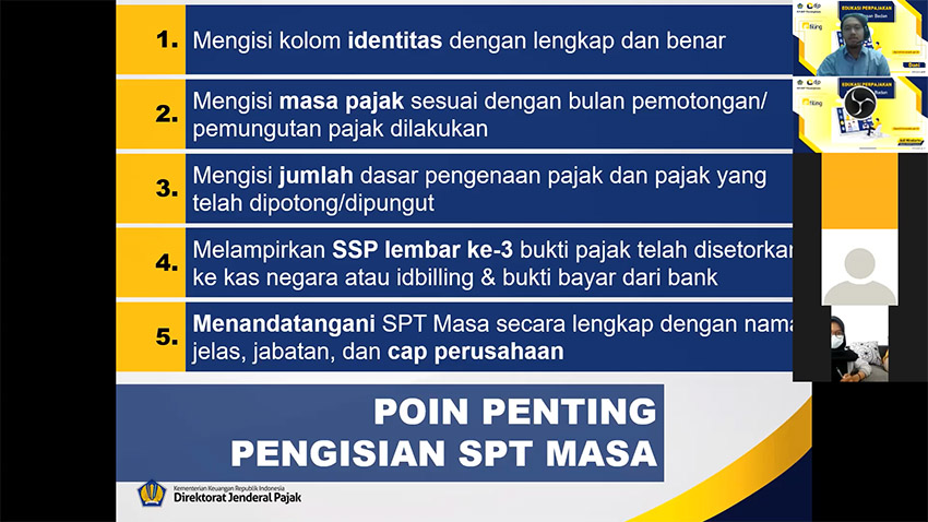 Adi juga mengatakan bahwa setelah berakhirnya tahun 2020, Wajib Pajak Badan diberi waktu empat bulan untuk melaporkan pajaknya sampai dengan 30 April sesuai Undang-Undang Perpajakan. Waktu tersebut diberikan mengingat diperlukan waktu bagi WP untuk membuat laporan keuangan sebagai dasar melaporkan SPT Tahunan Badan. “Bagi Wajib Pajak Badan yang mengalami kesulitan dalam membuat SPT Tahunan Badan, kami siap membantu pada hari dan jam kerja, jangan sampai terlambat melaporkan karena sanksi administrasinya cukup besar yaitu satu juta rupiah jika terlambat atau tidak melaporkan SPT Tahunan Badan,” tutupnya.